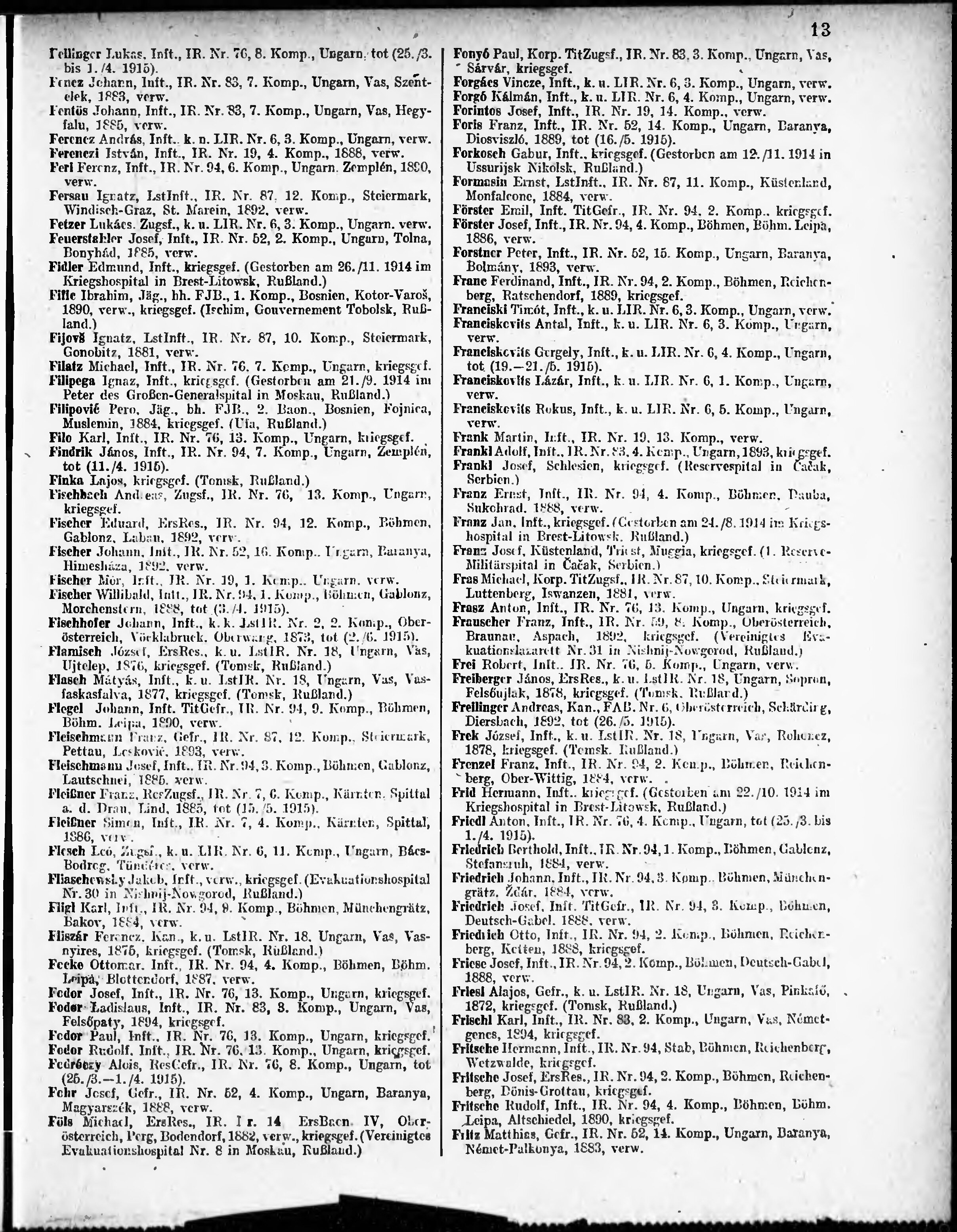 Verlustliste ausgegeben am