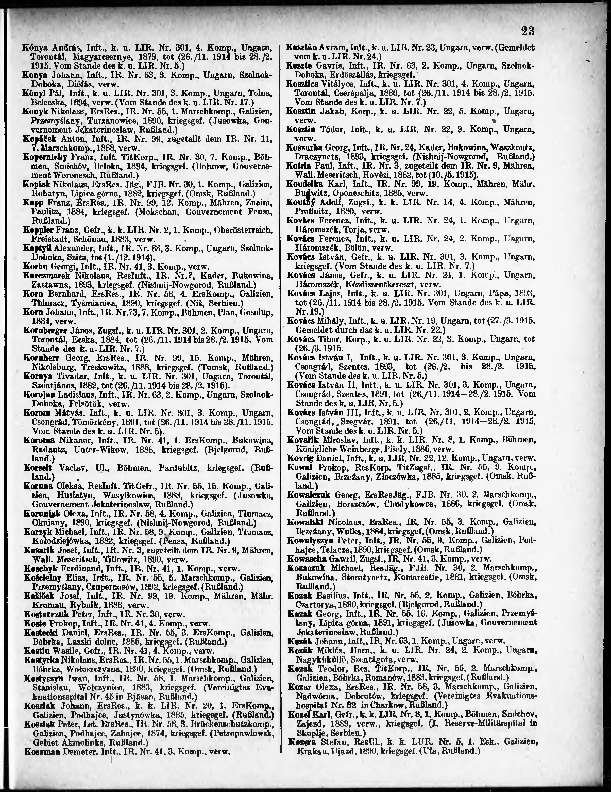 Verlustliste ausgegeben am