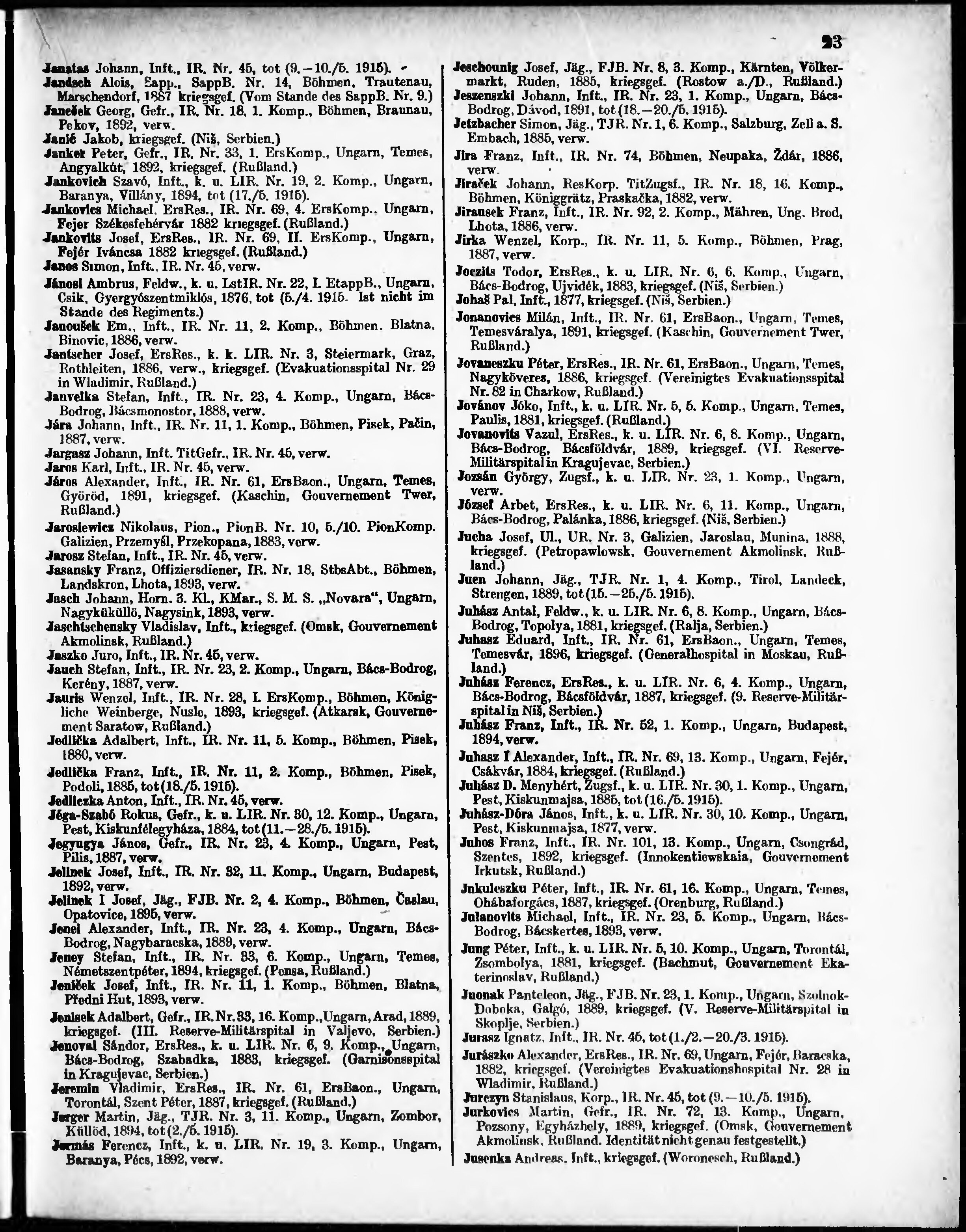 Verlustliste ausgegeben am