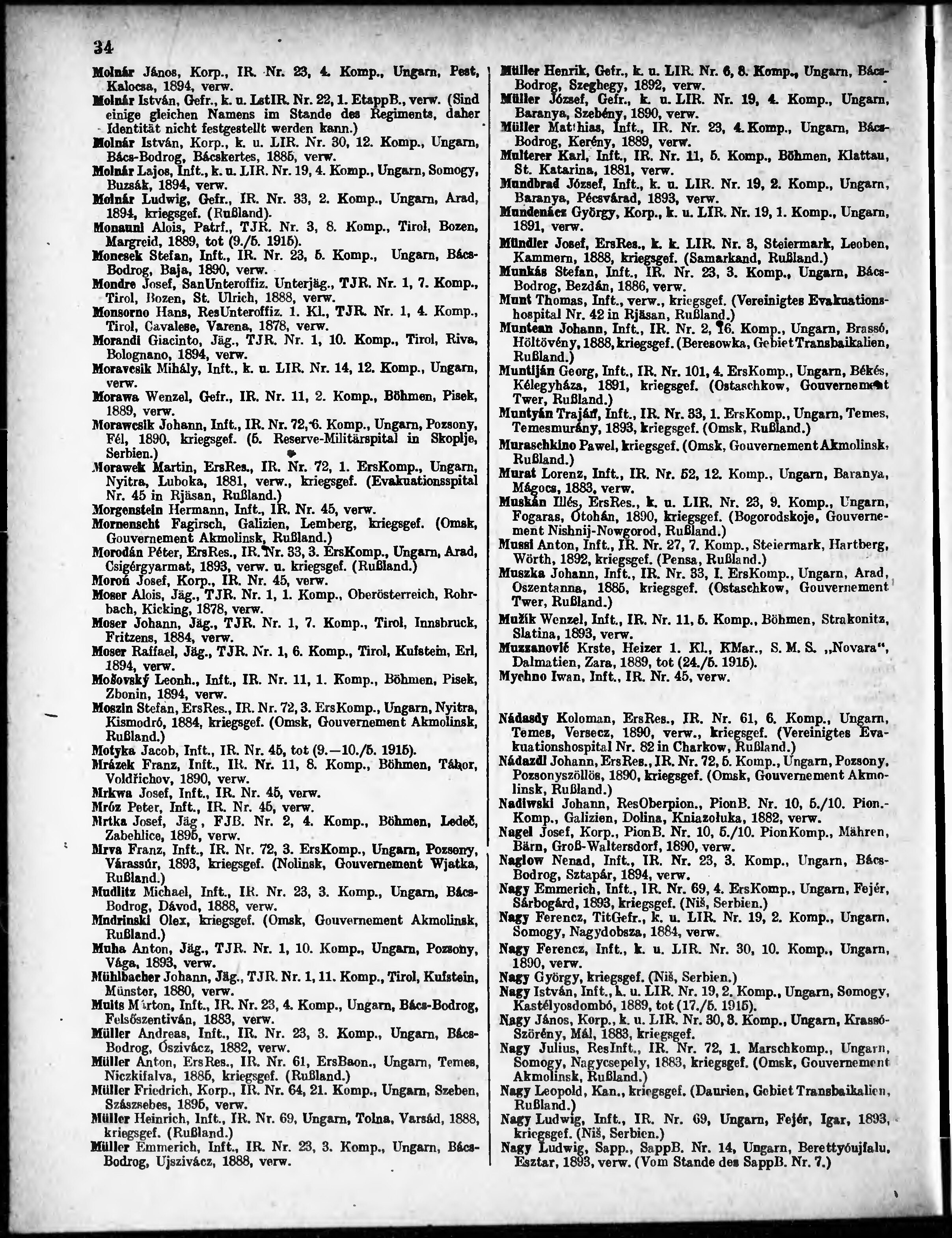 Verlustliste ausgegeben am
