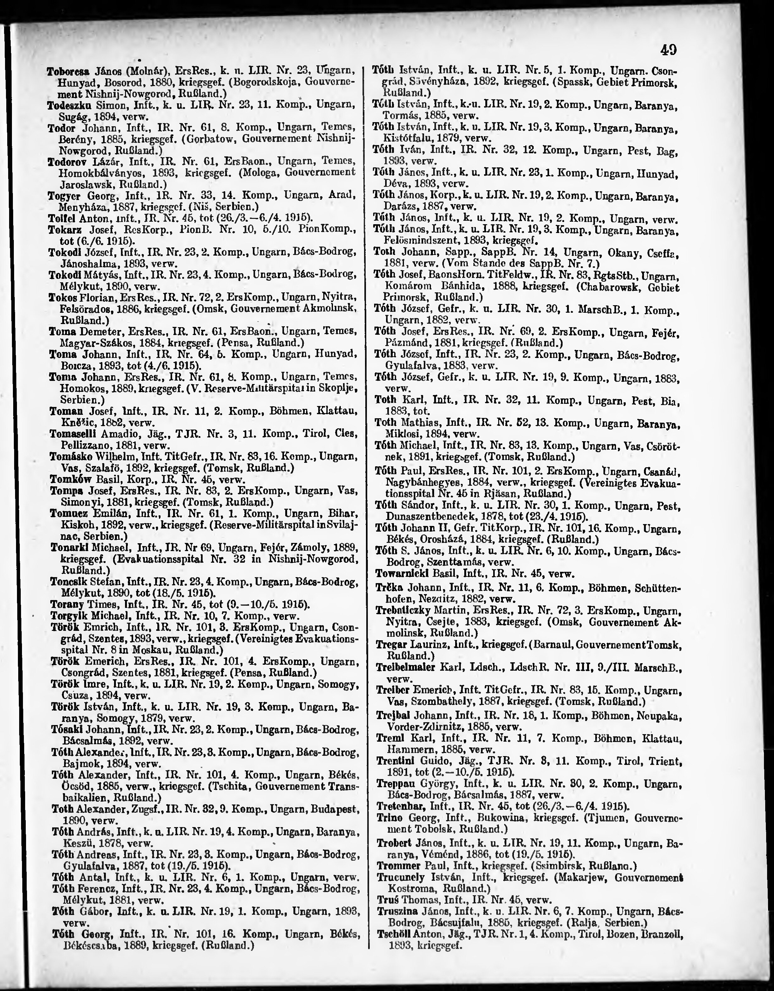 Verlustliste ausgegeben am
