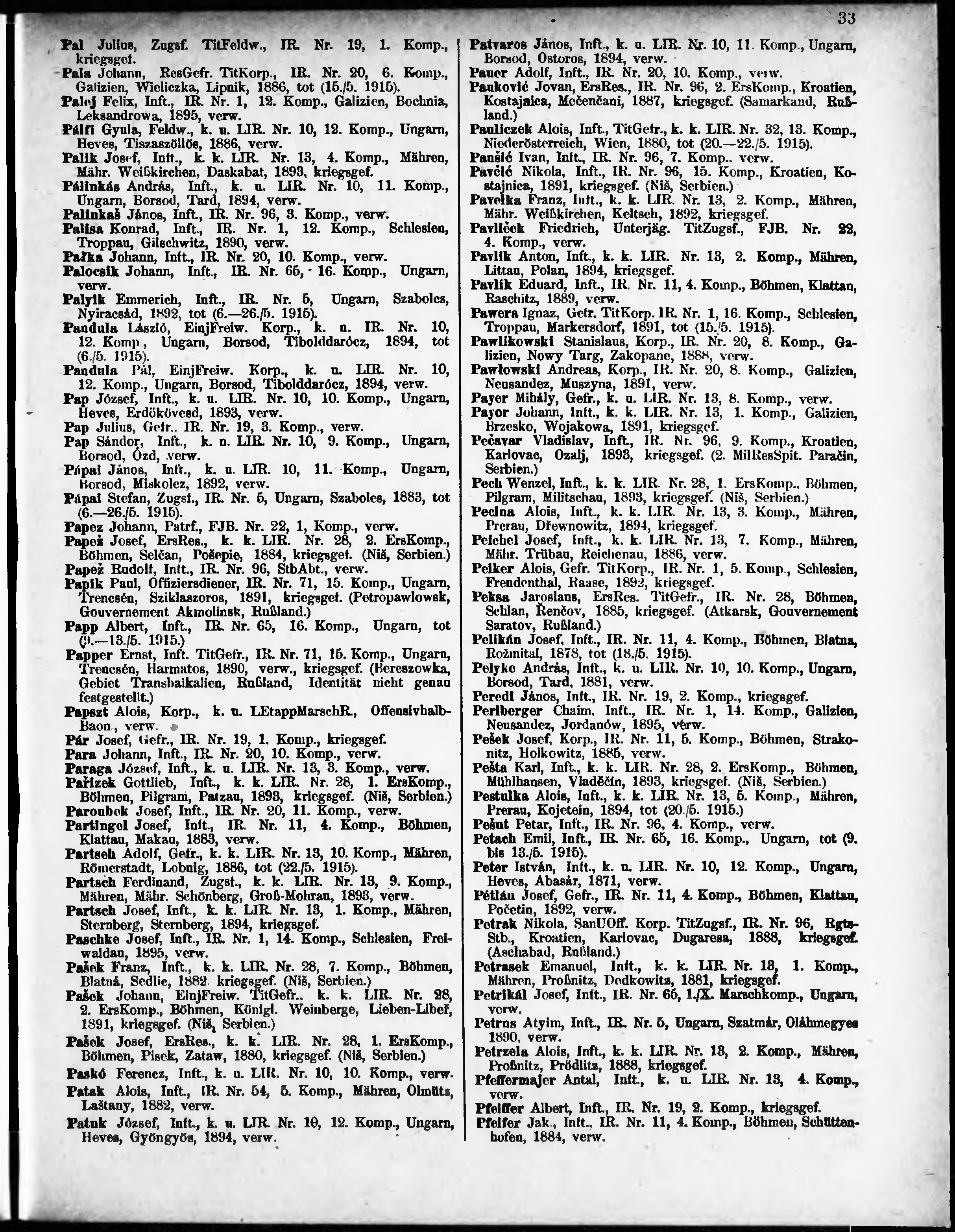 Verlustliste ausgegeben am