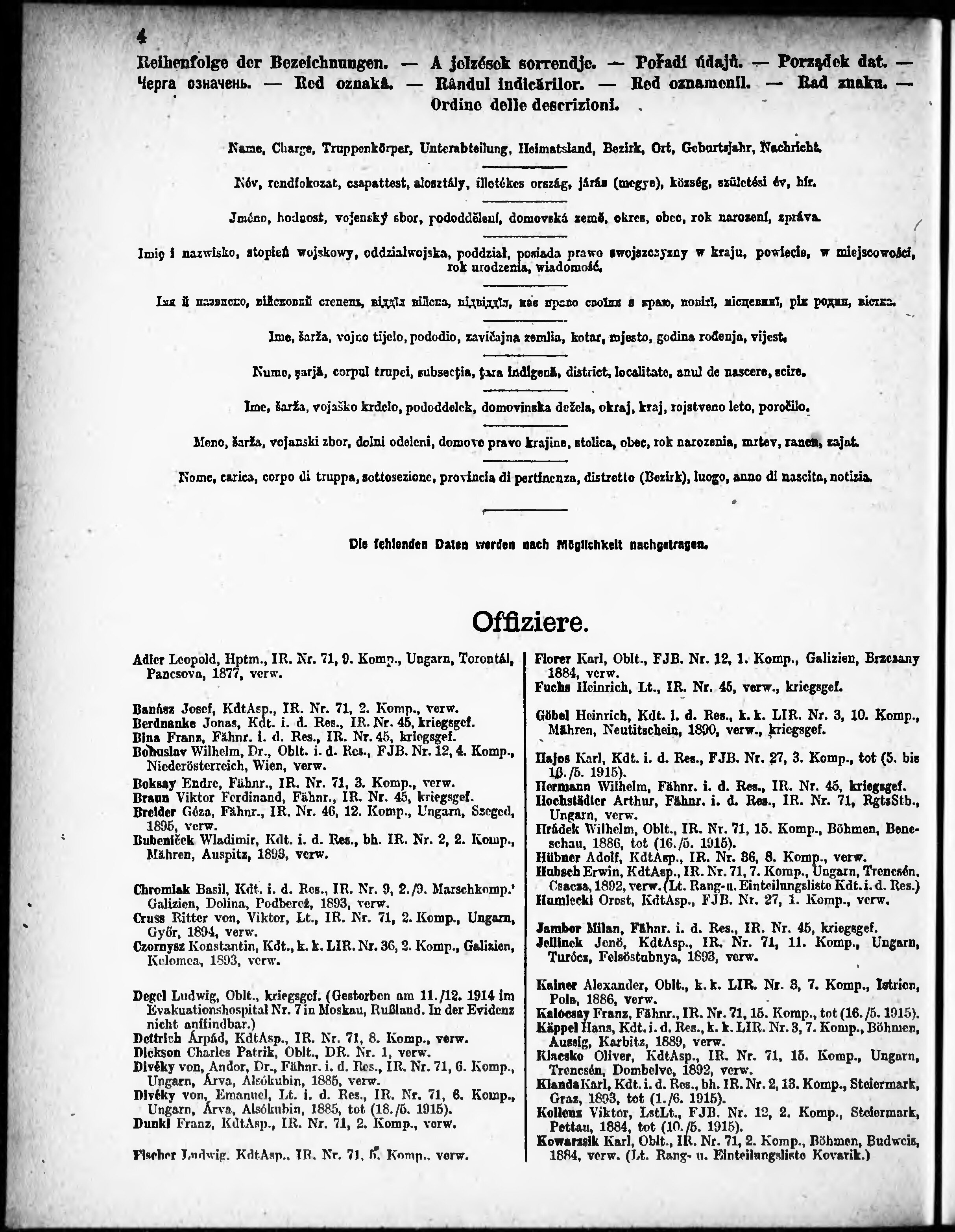 Verlustliste ausgegeben am