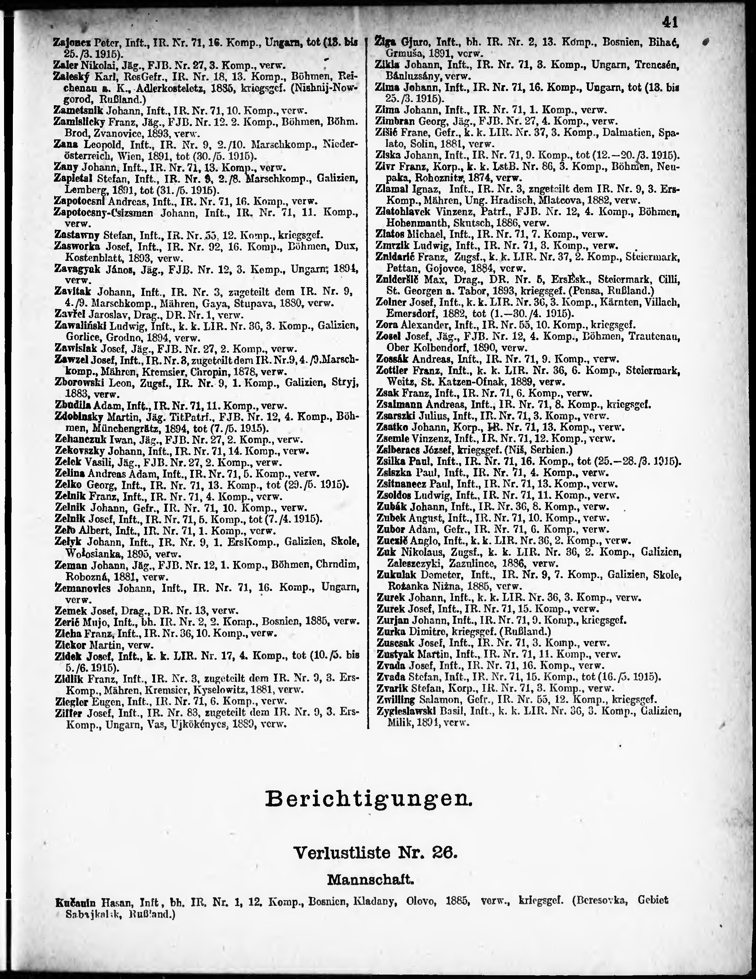 Verlustliste ausgegeben am