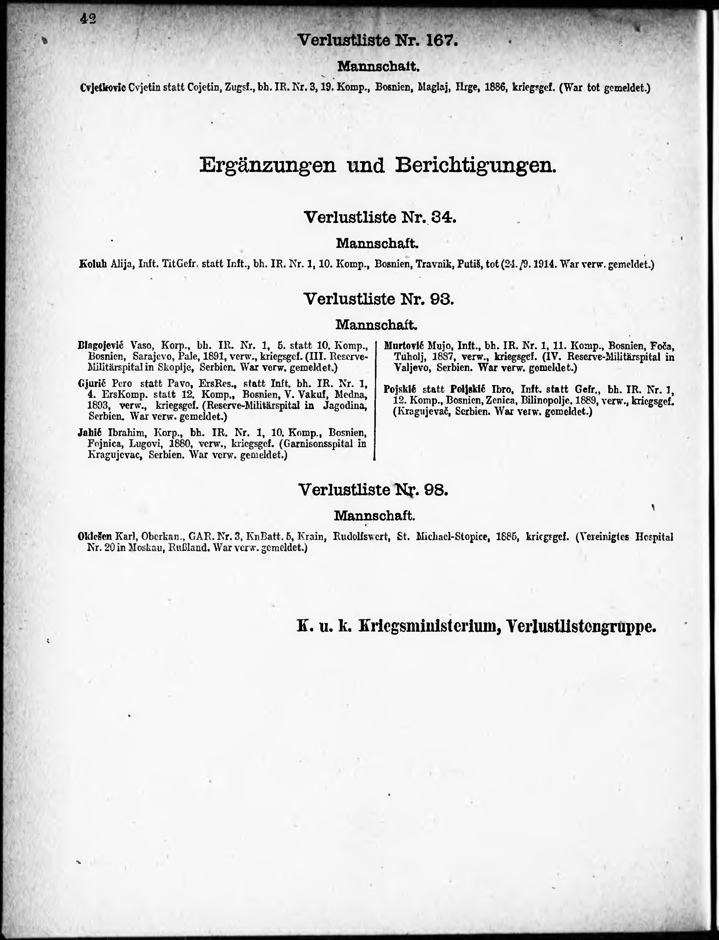Verlustliste ausgegeben am