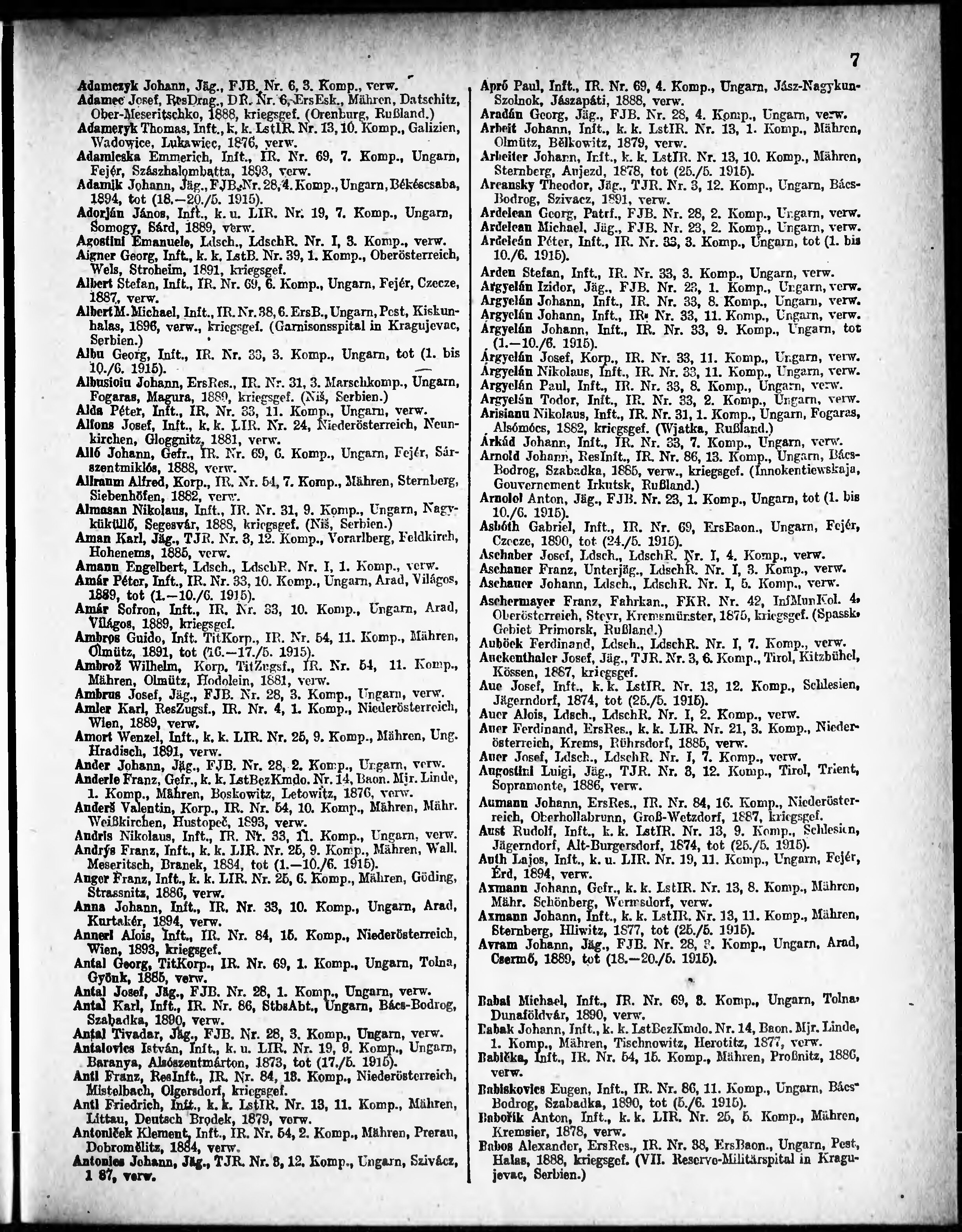 Verlustliste ausgegeben am