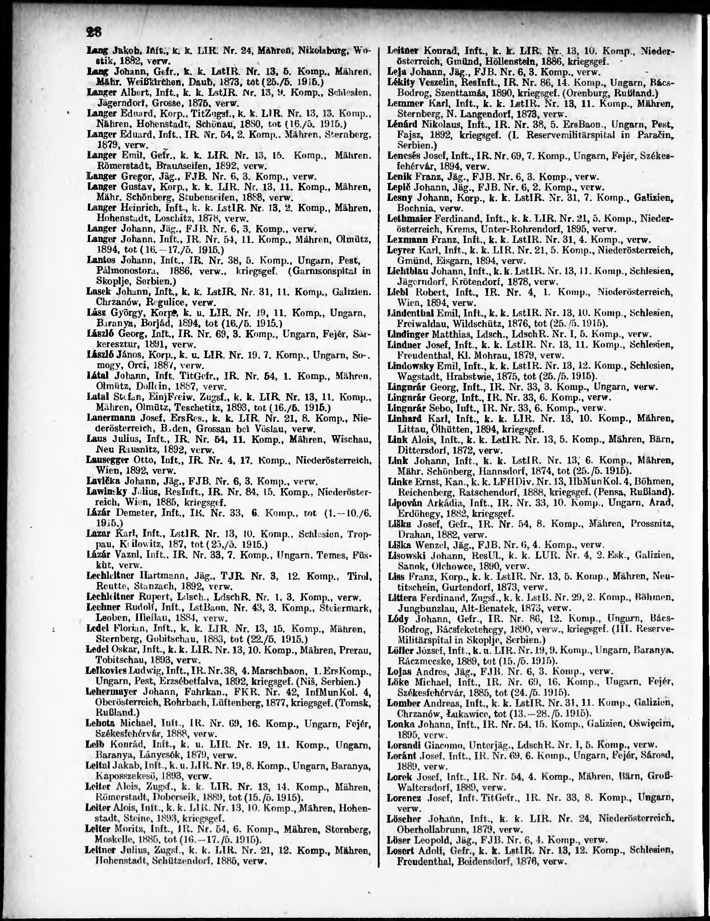 Verlustliste ausgegeben am