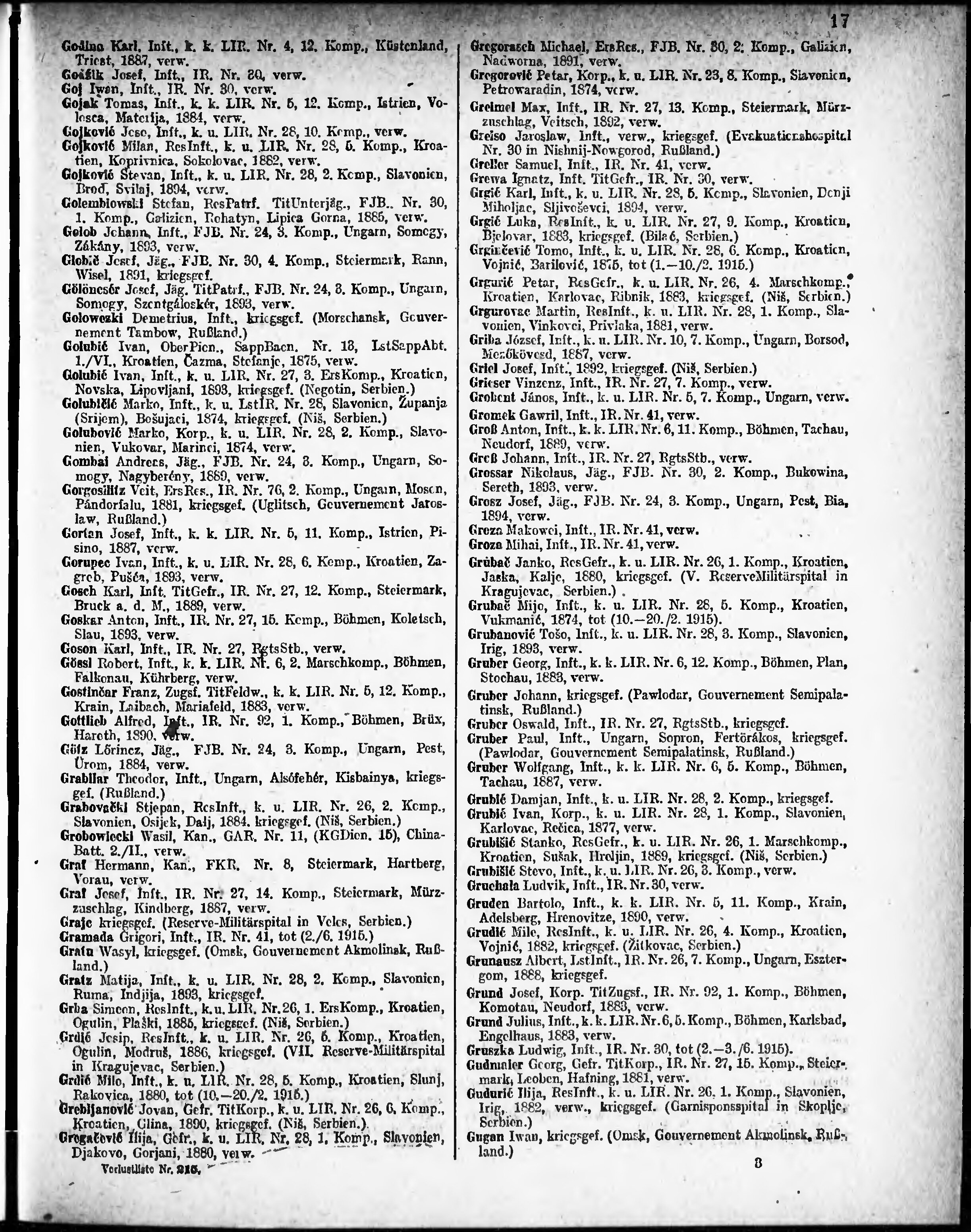 Verlustliste ausgegeben am