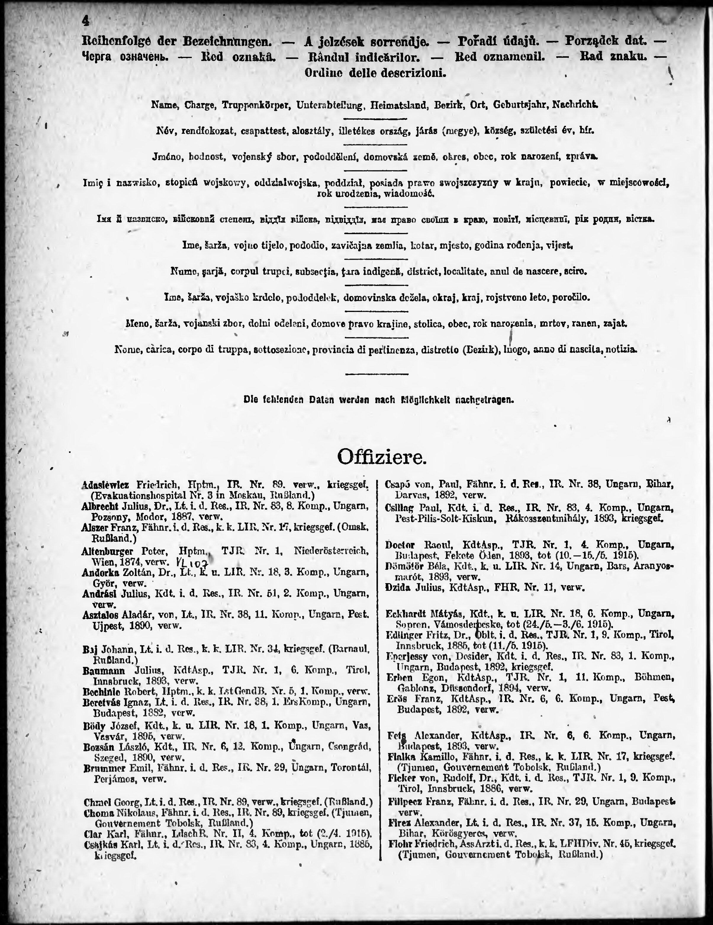 Verlustliste ausgegeben am