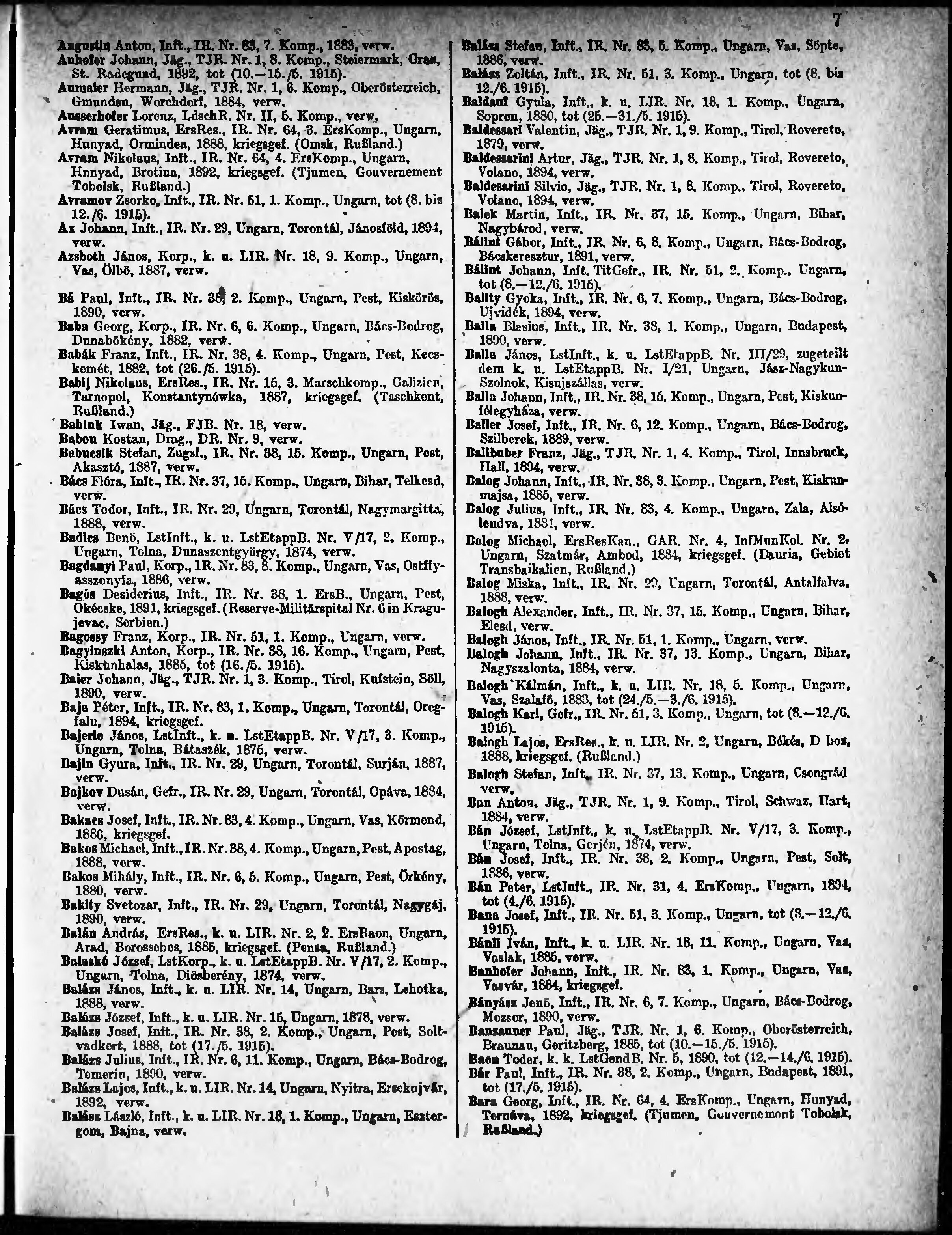 Verlustliste ausgegeben am
