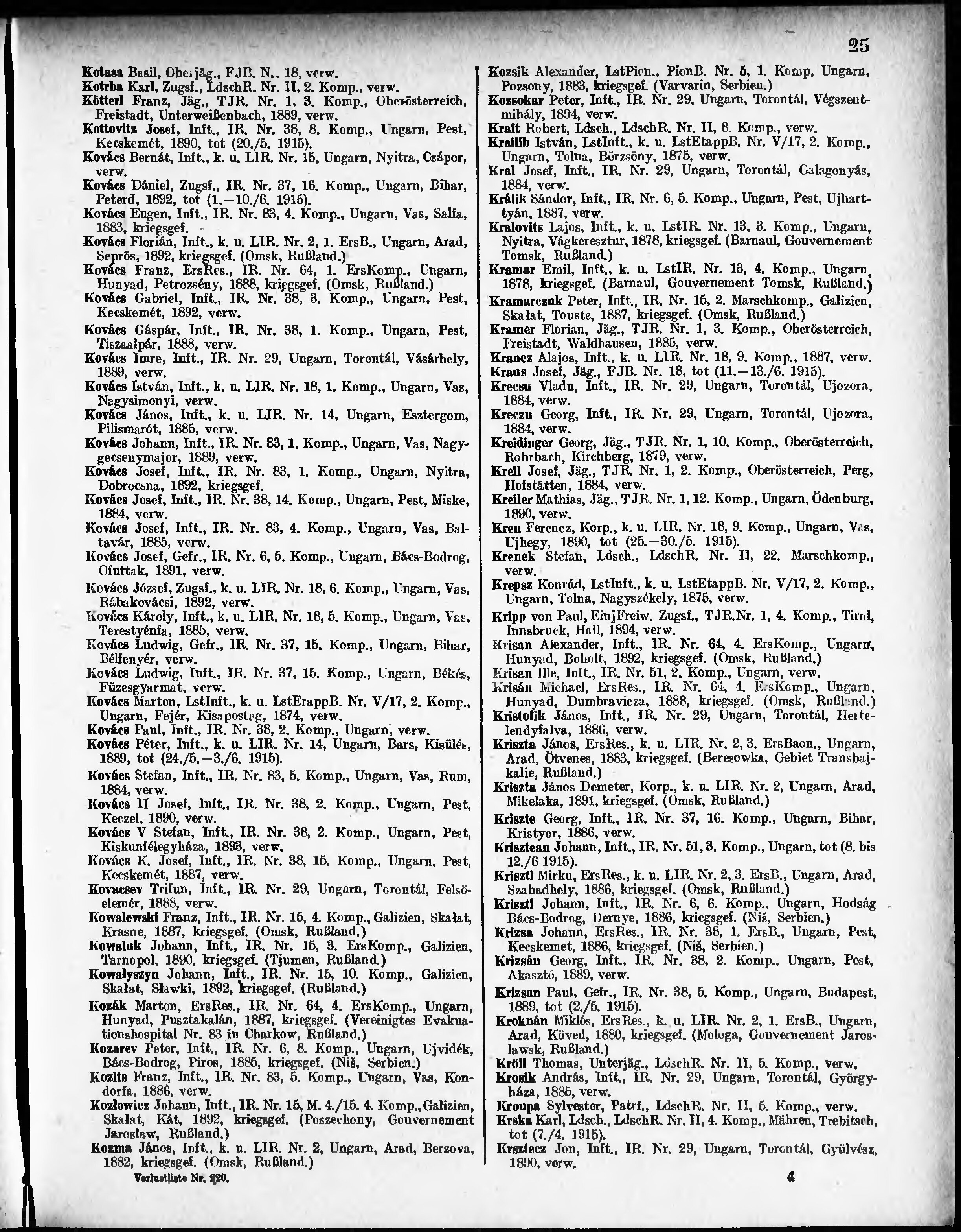 Verlustliste ausgegeben am