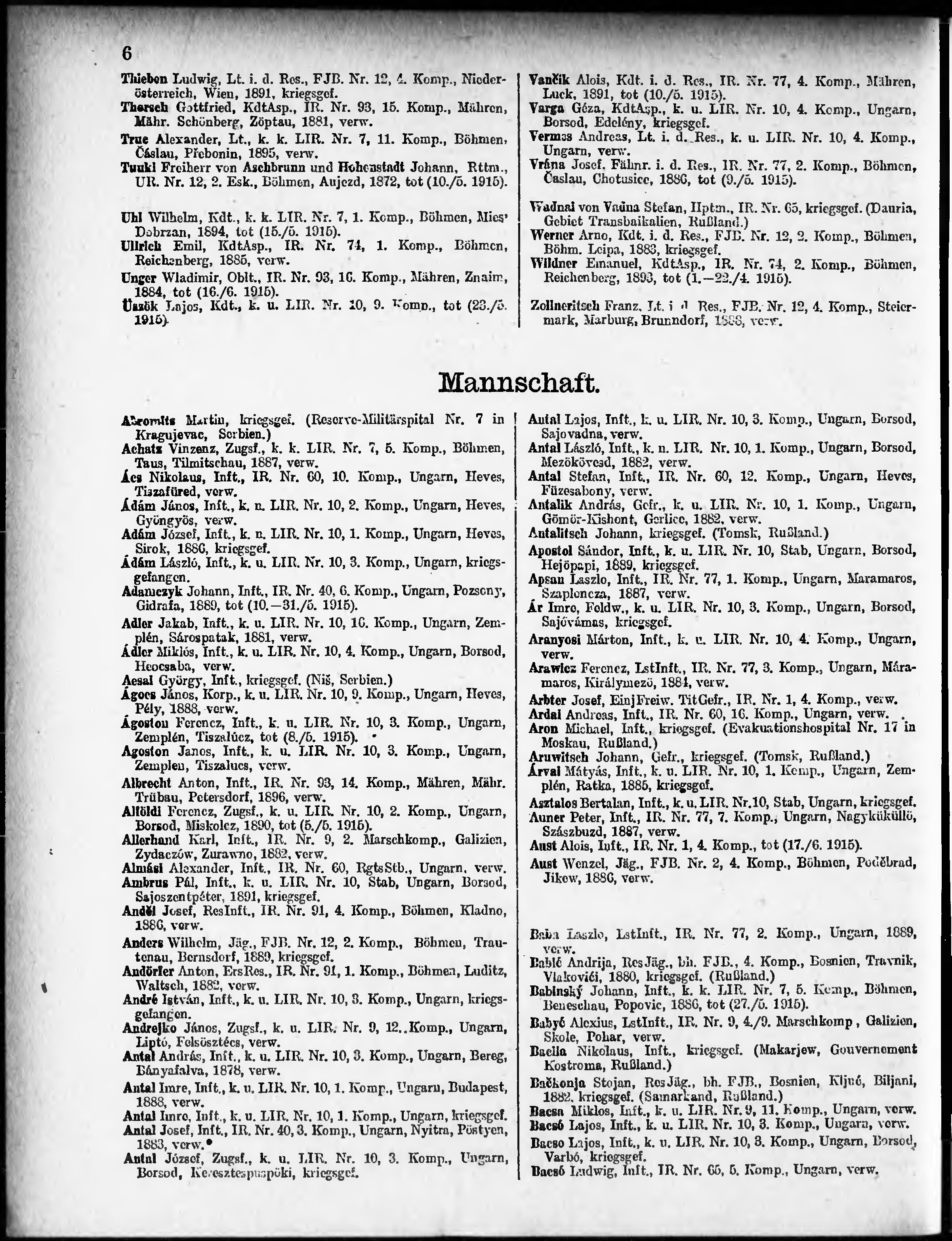 Verlustliste ausgegeben am