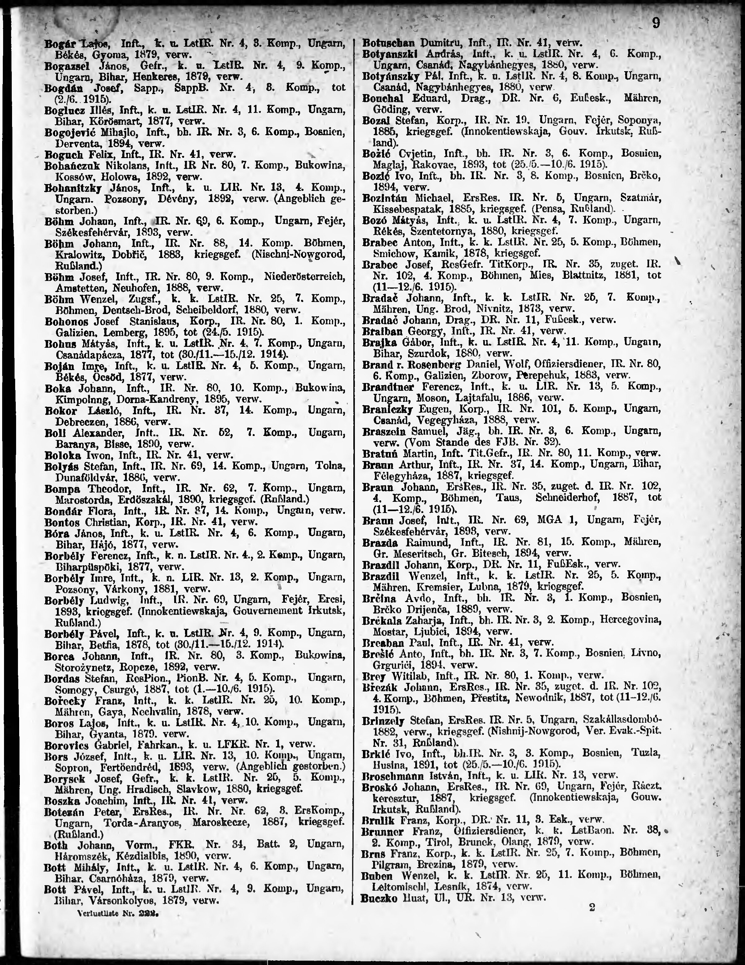 Verlustliste ausgegeben am