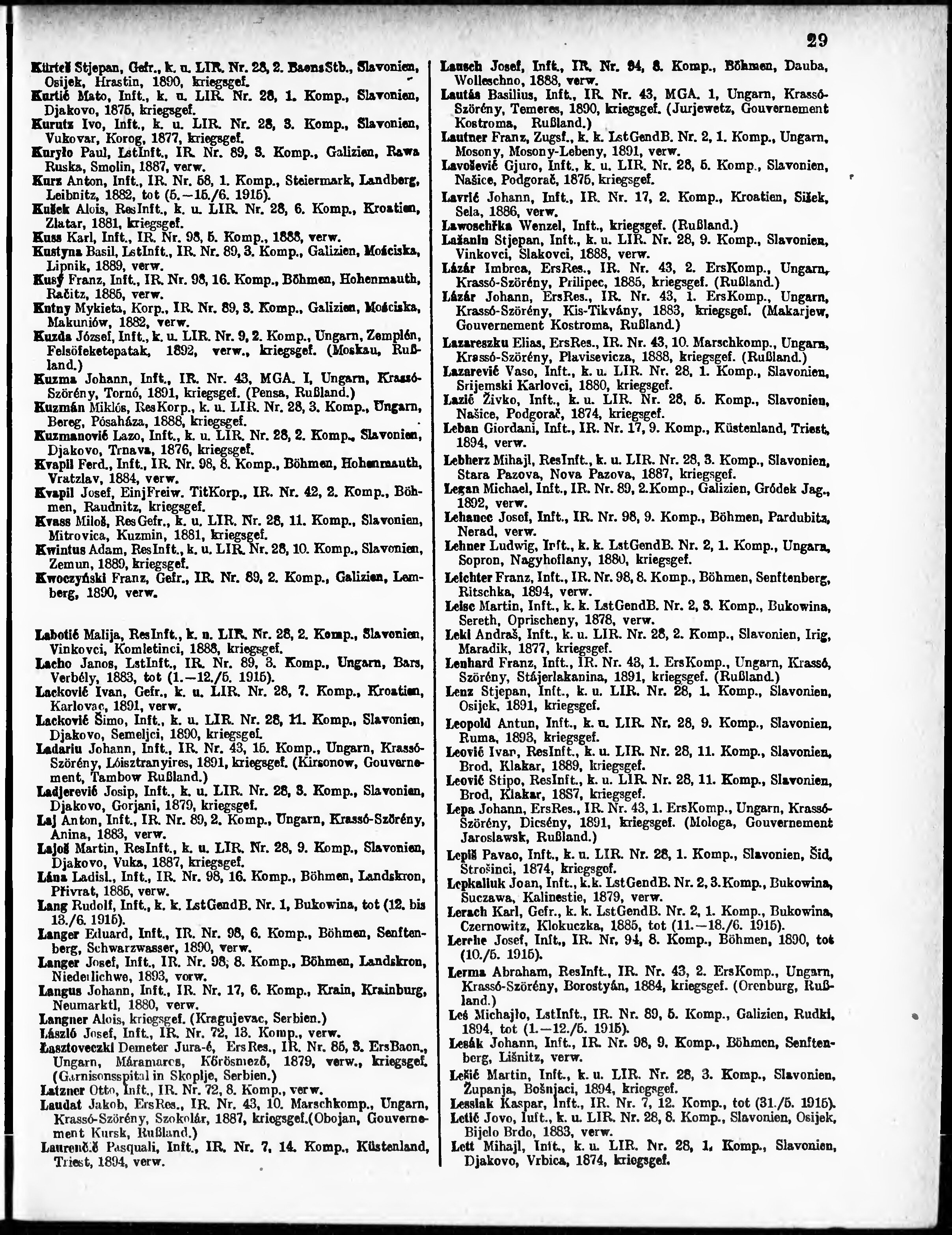 Verlustliste ausgegeben am