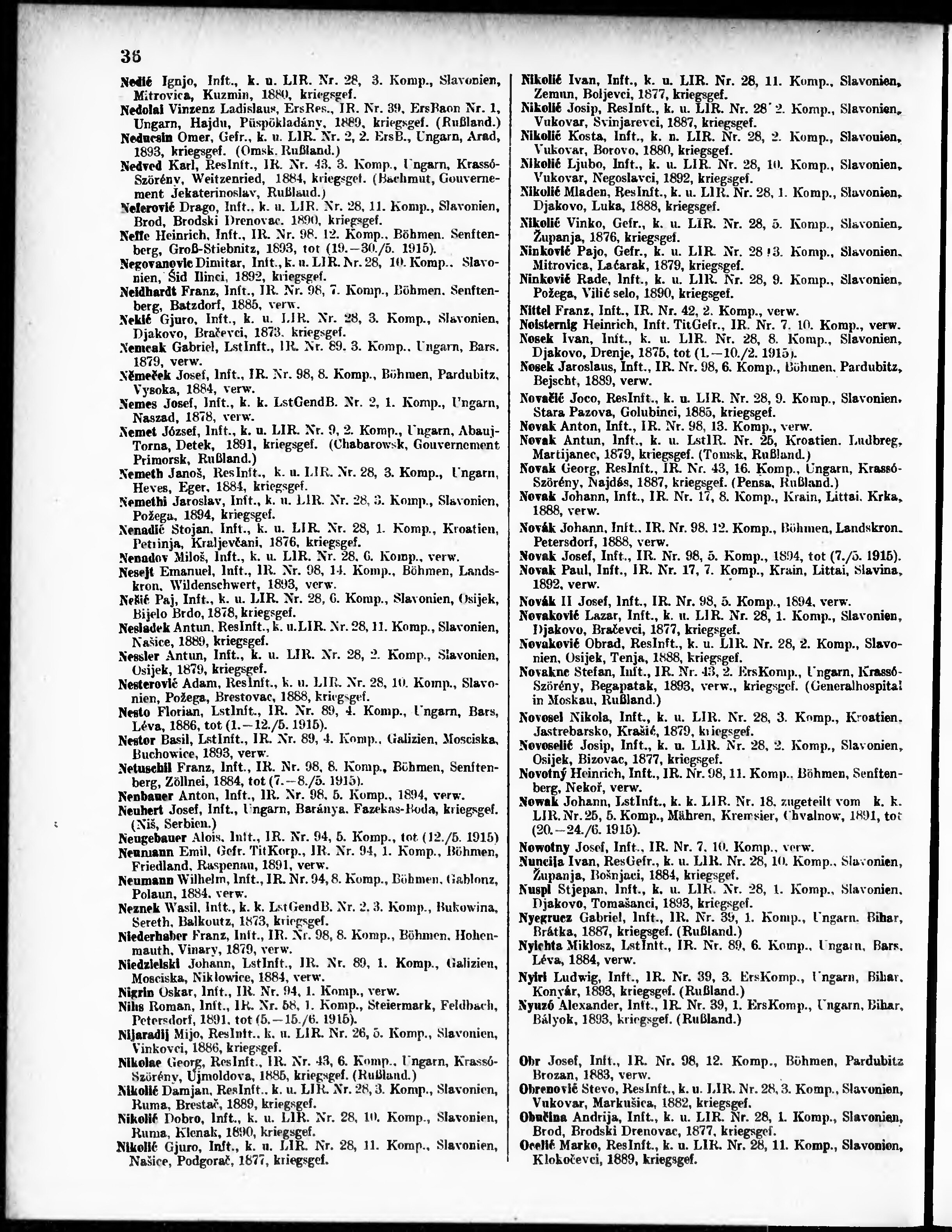 Verlustliste ausgegeben am