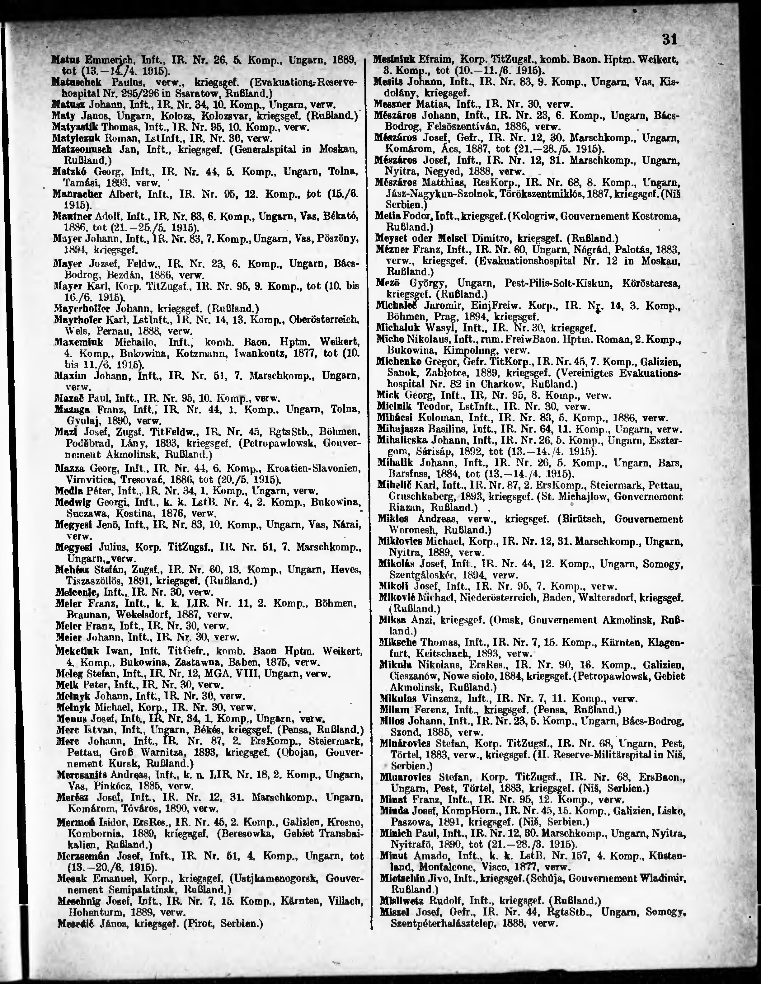 Verlustliste ausgegeben am