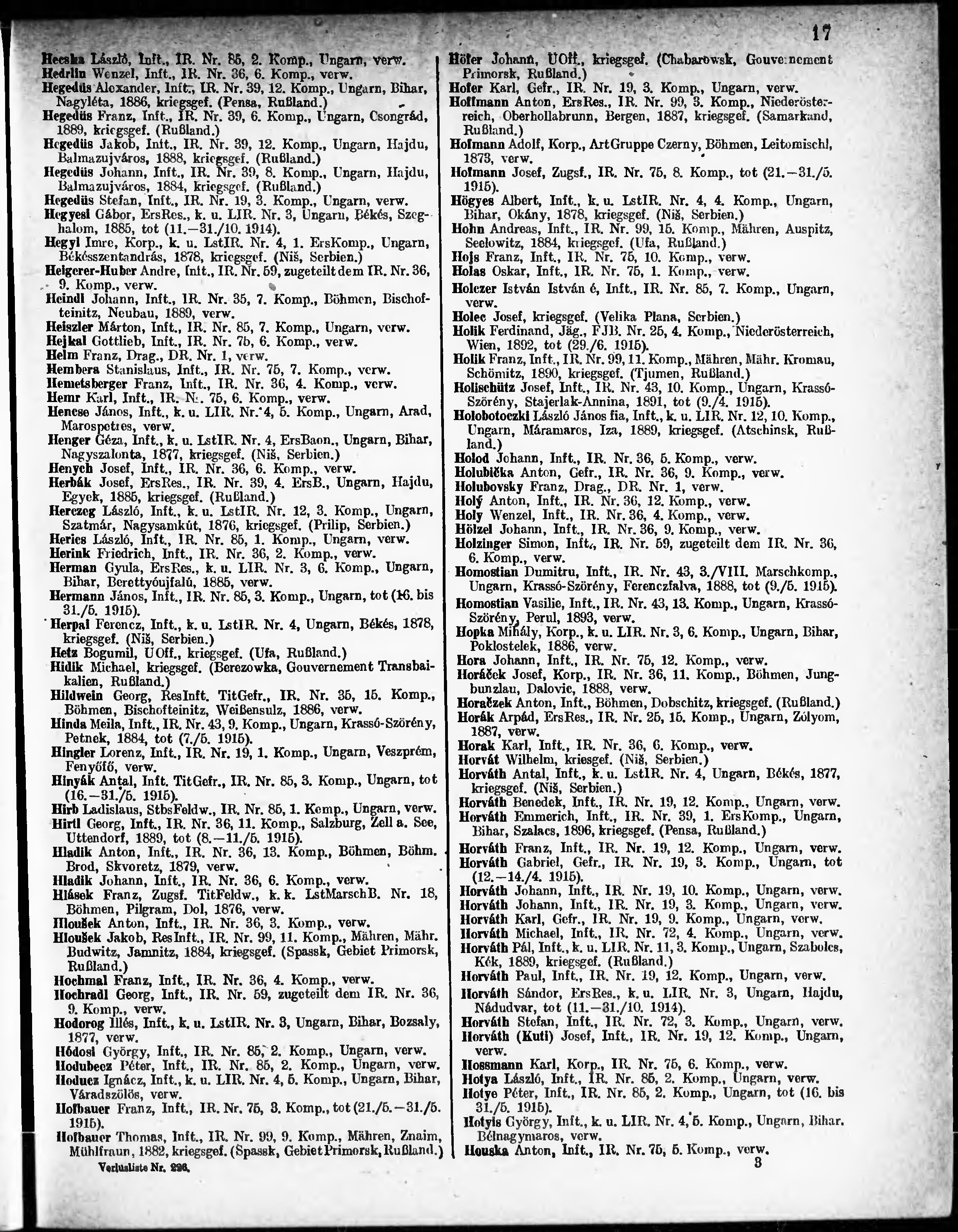 Verlustliste ausgegeben am