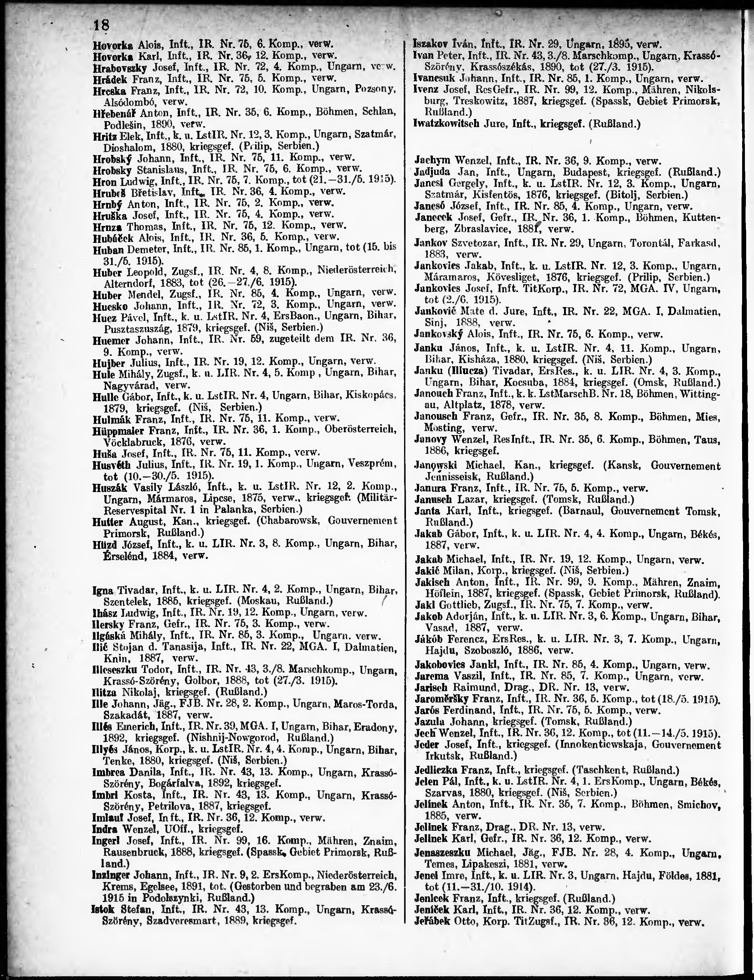 Verlustliste ausgegeben am