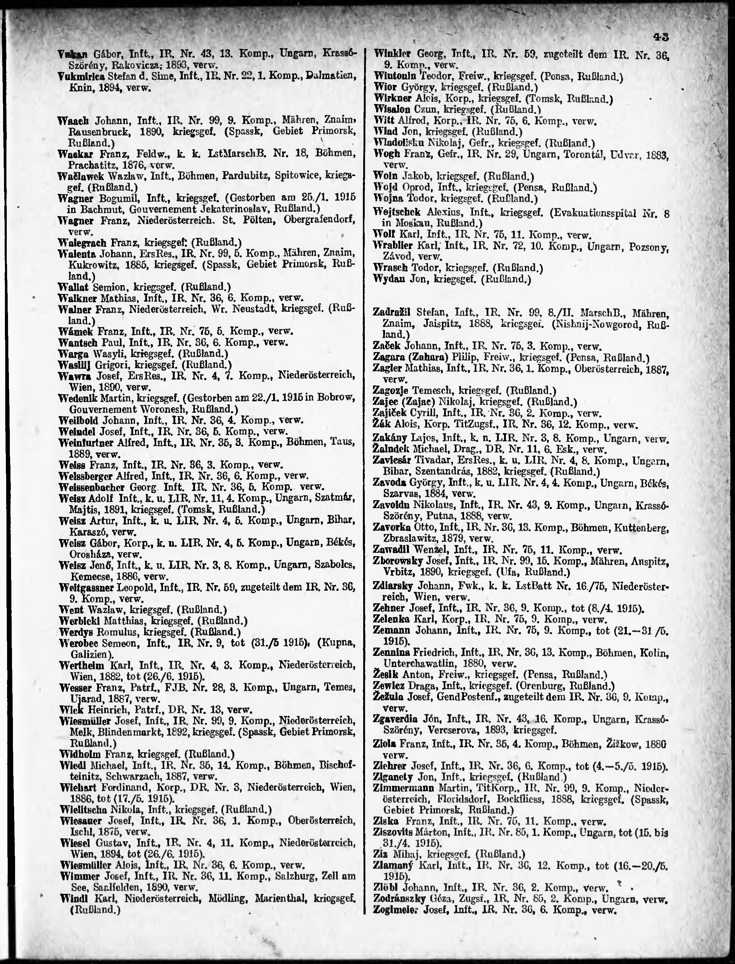 Verlustliste ausgegeben am