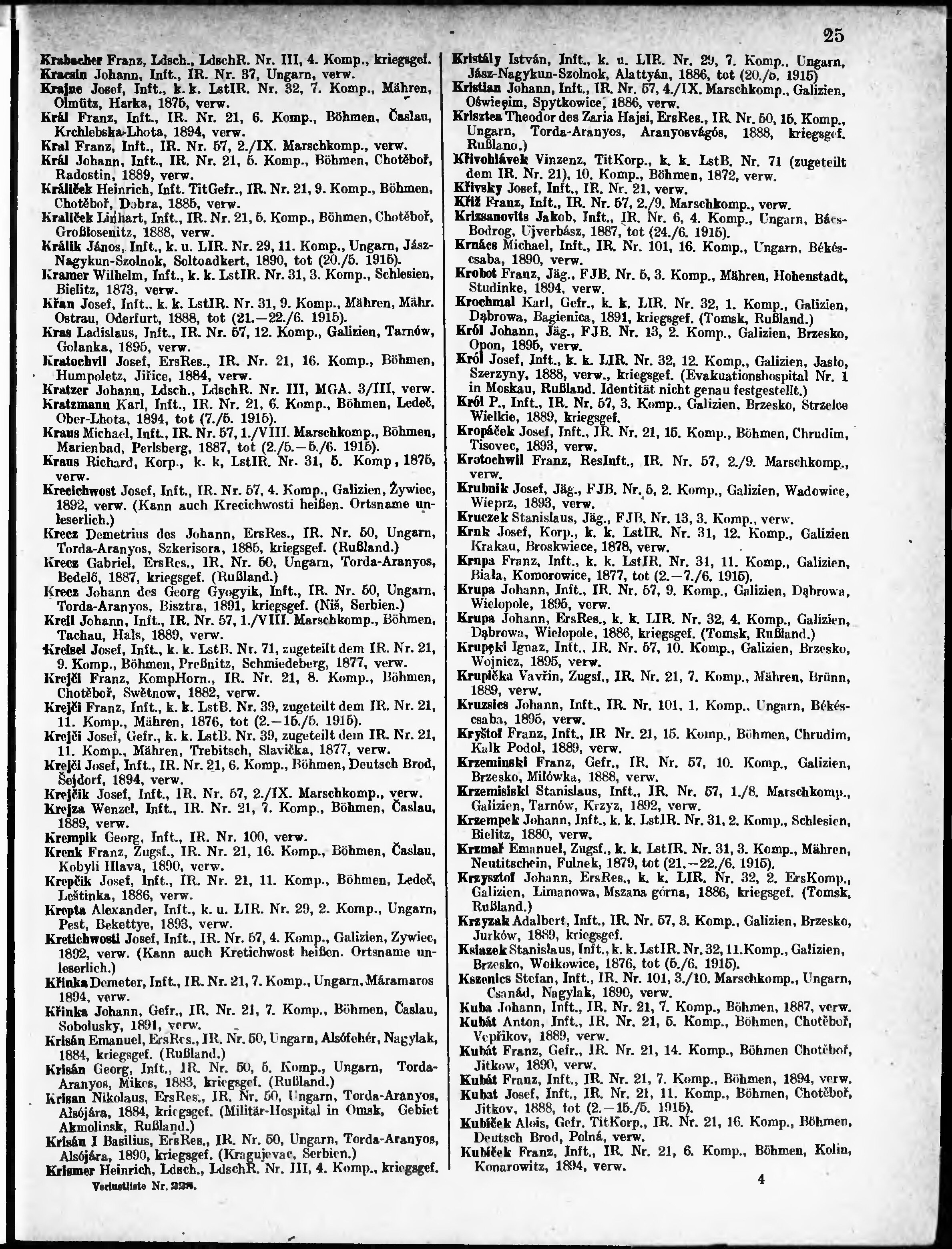 Verlustliste ausgegeben am