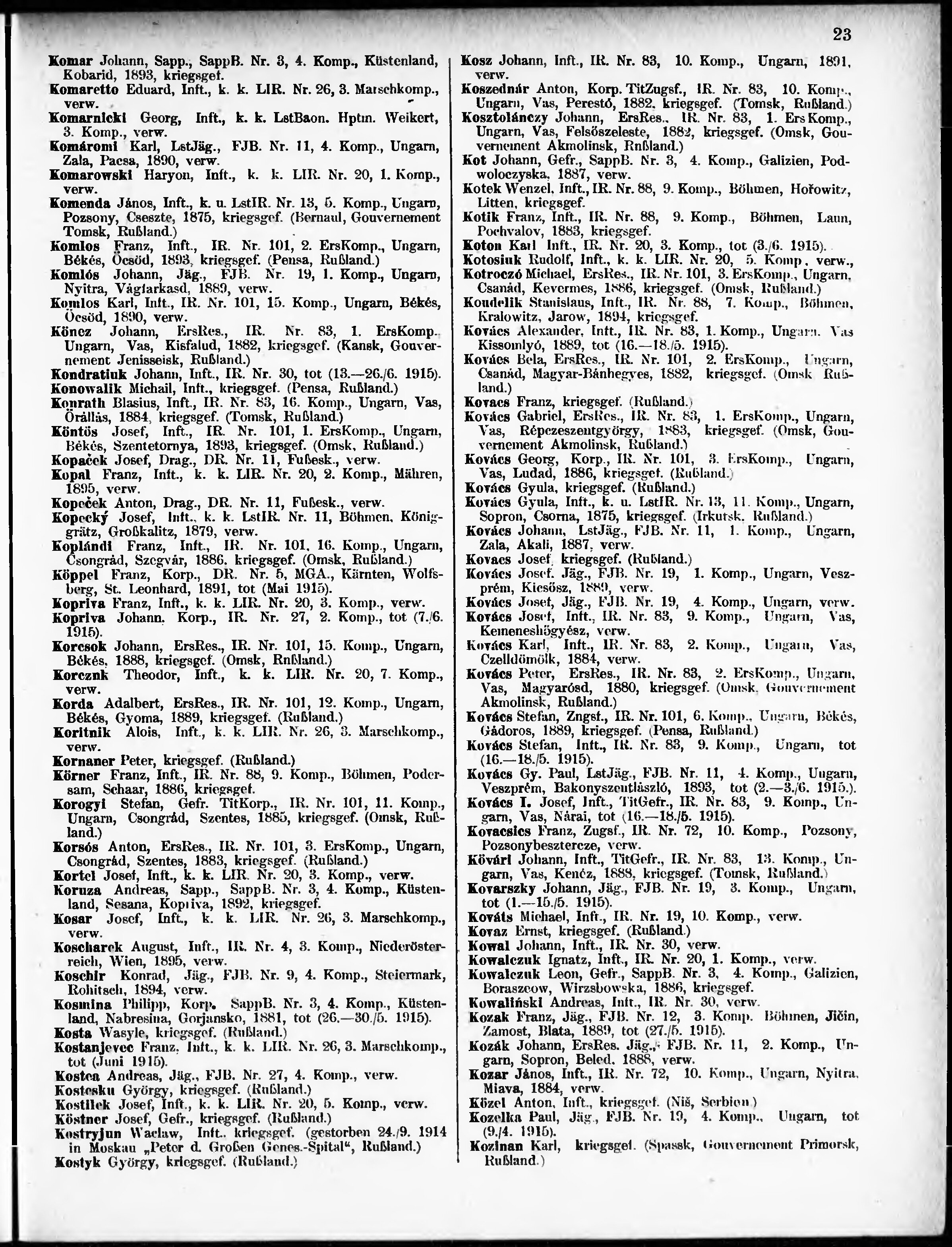 Verlustliste ausgegeben am