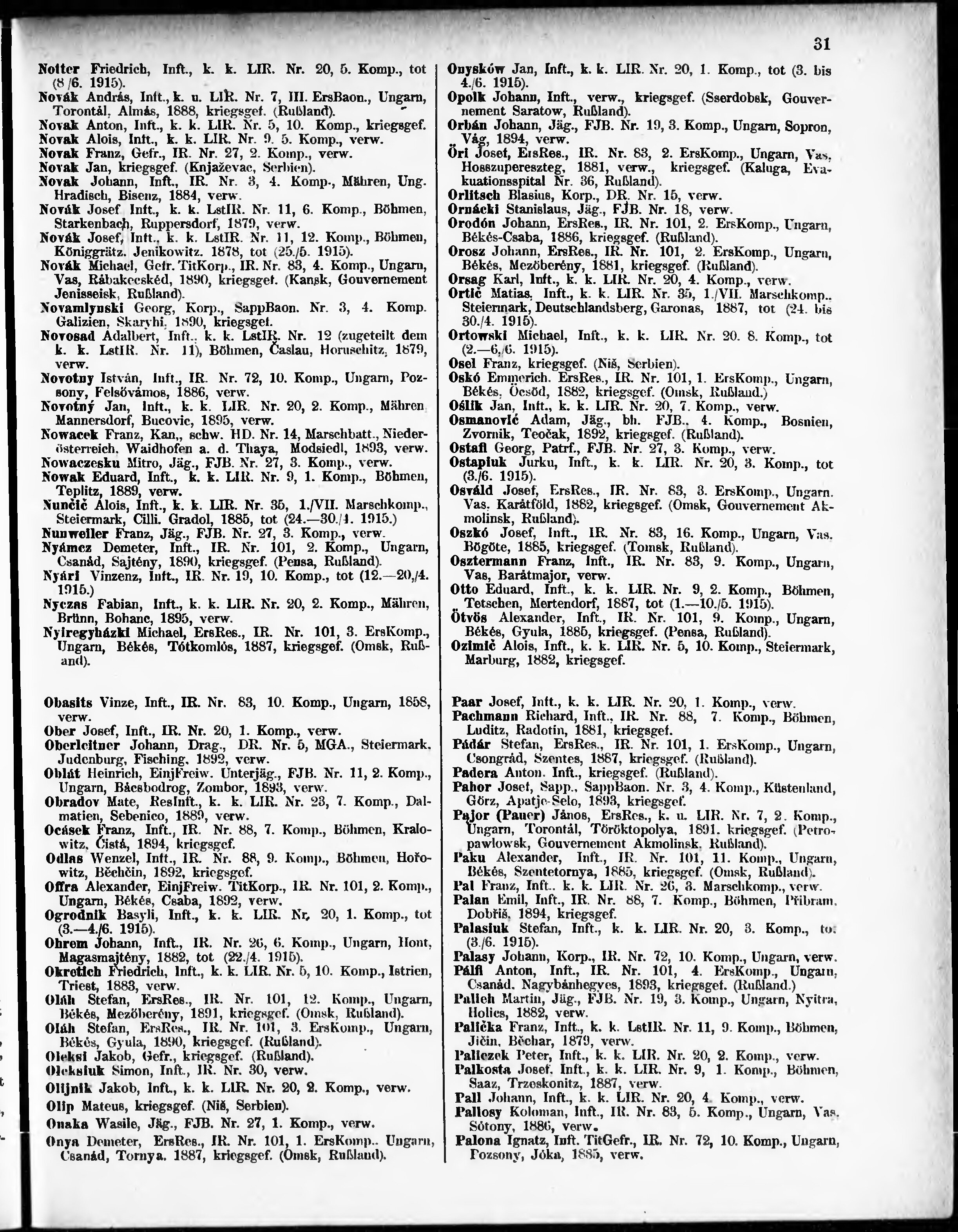 Verlustliste ausgegeben am