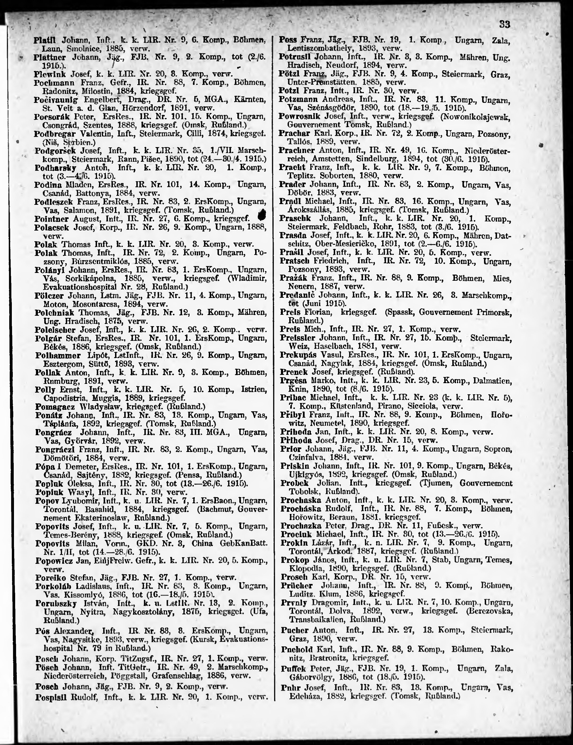 Verlustliste ausgegeben am