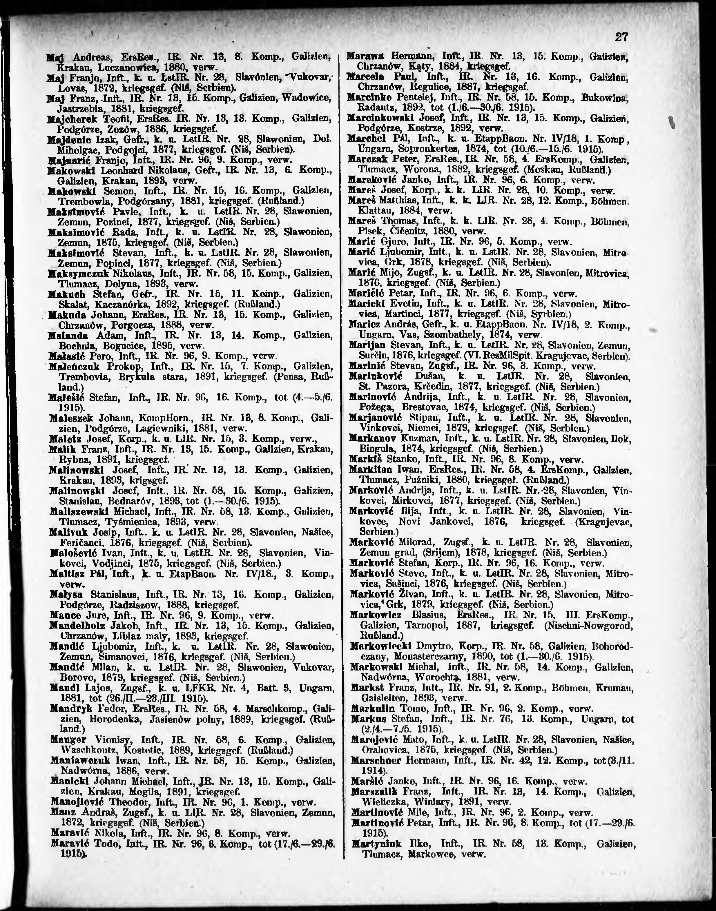 Verlustliste ausgegeben am