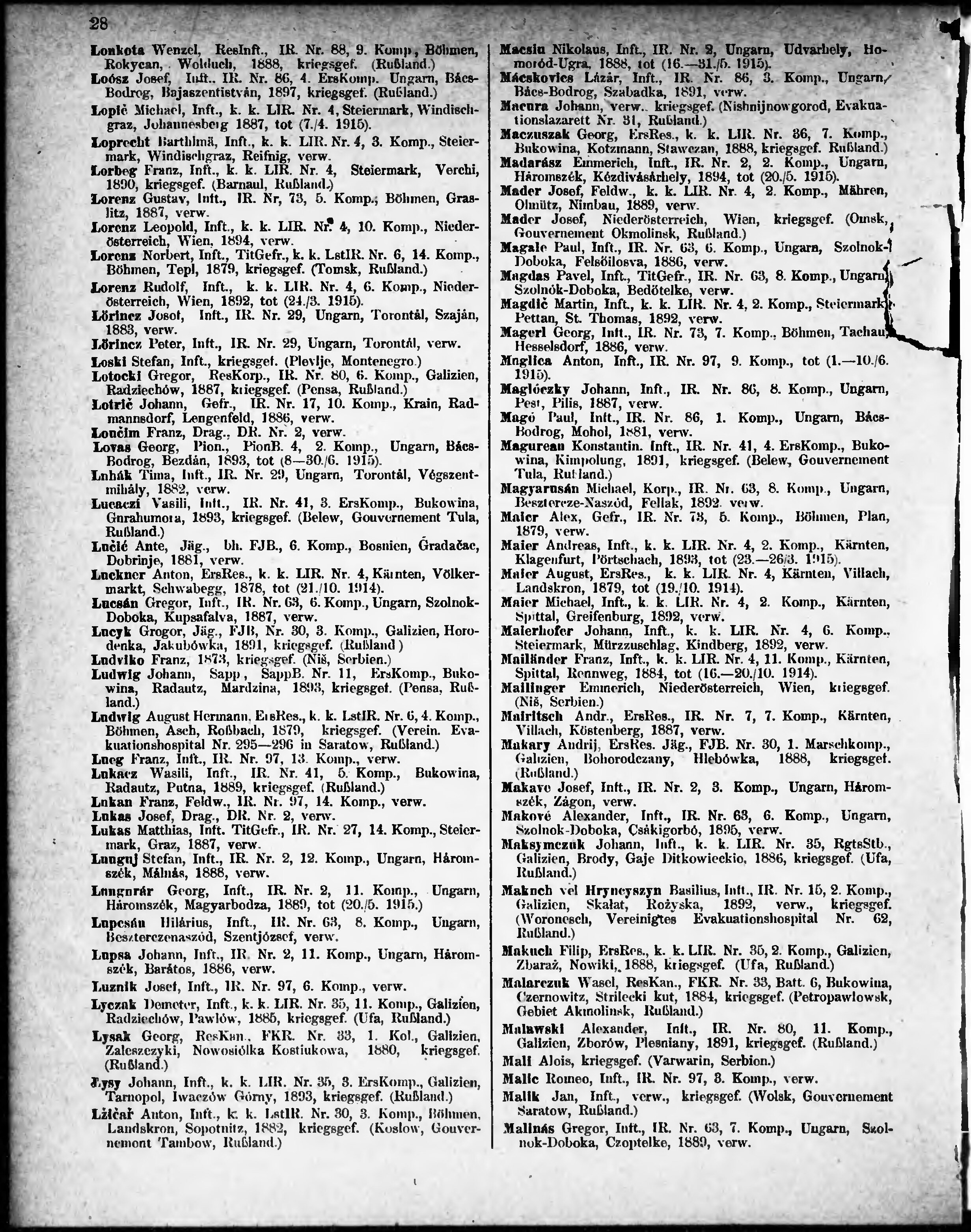 Verlustliste ausgegeben am