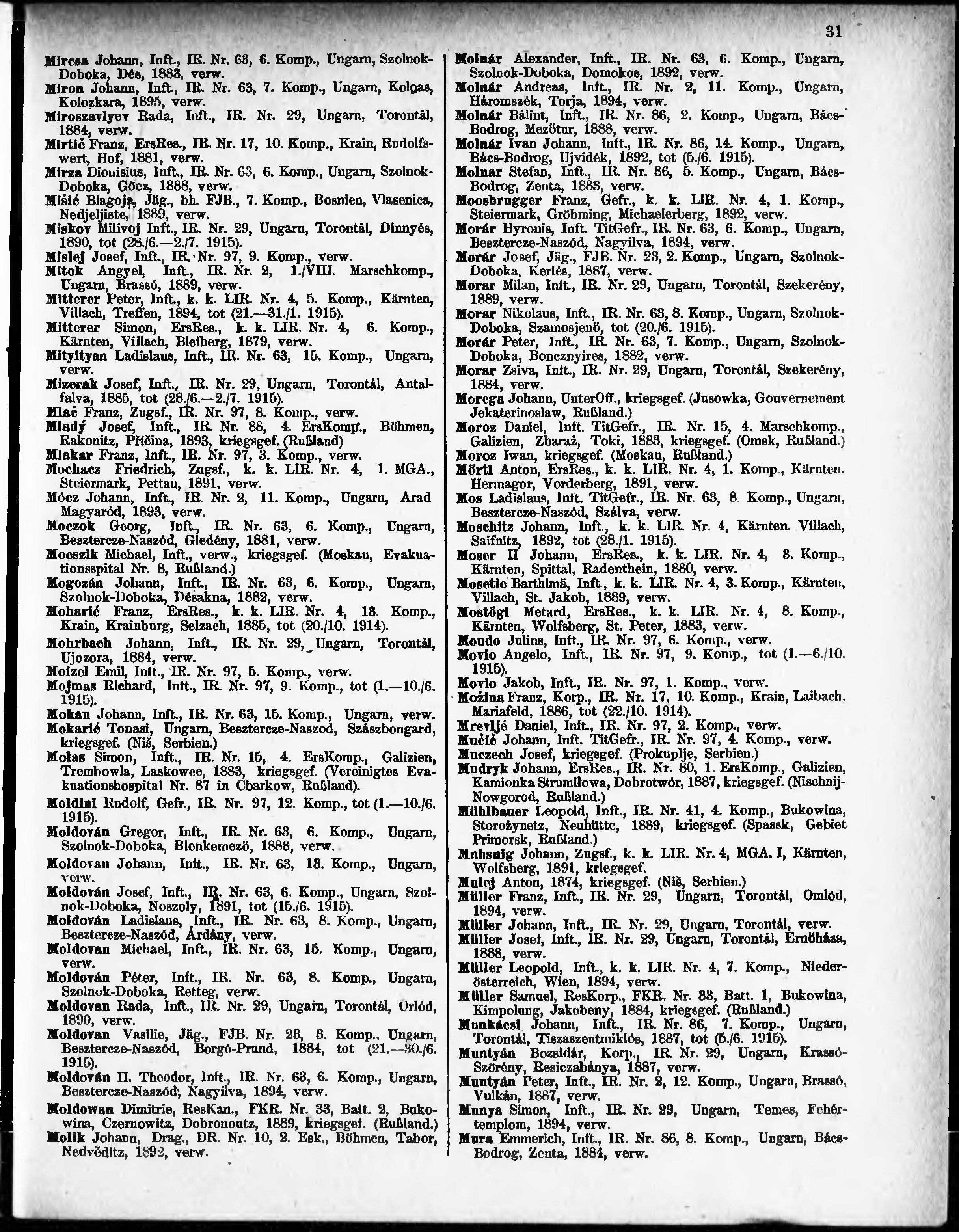 Verlustliste ausgegeben am