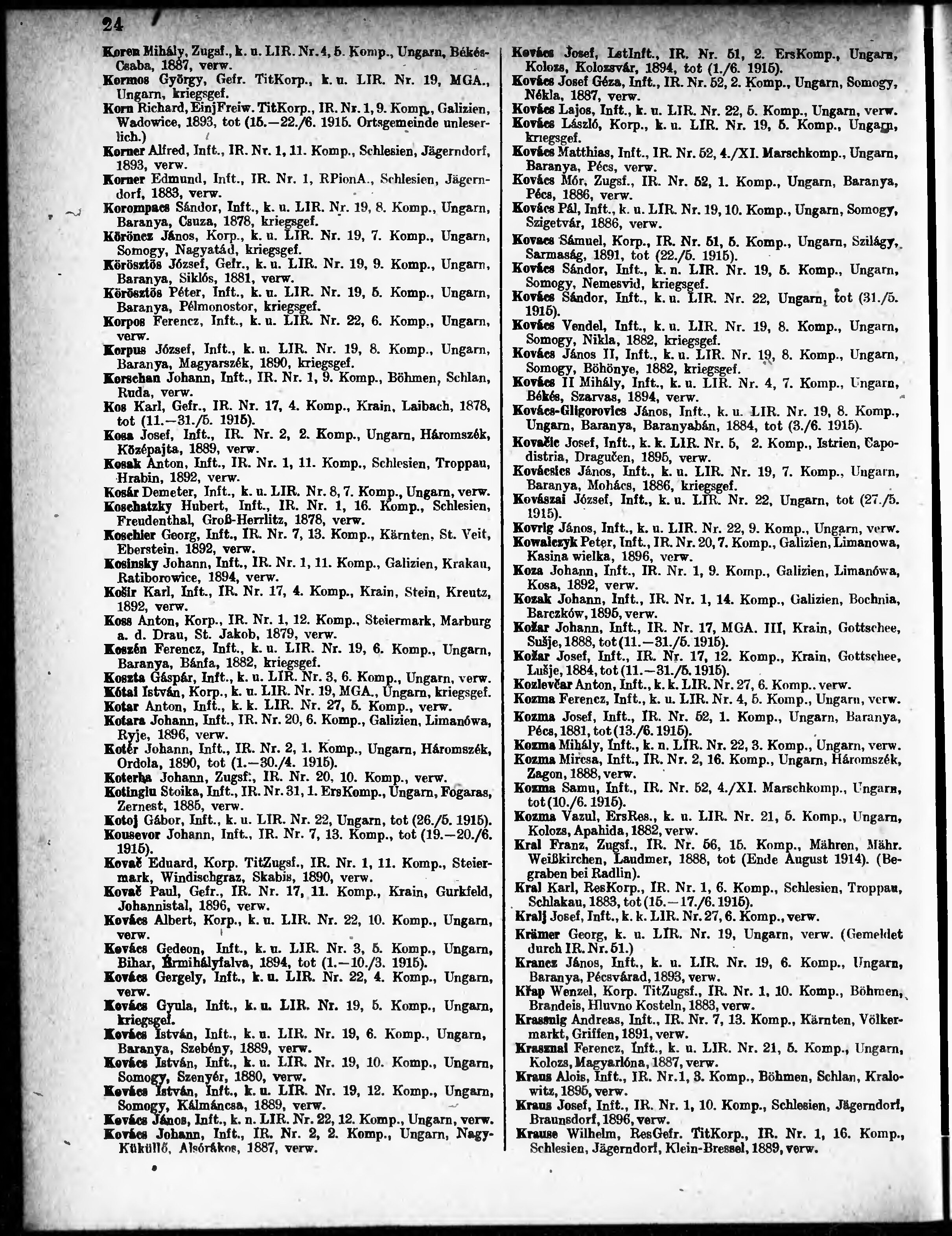 Verlustliste ausgegeben am