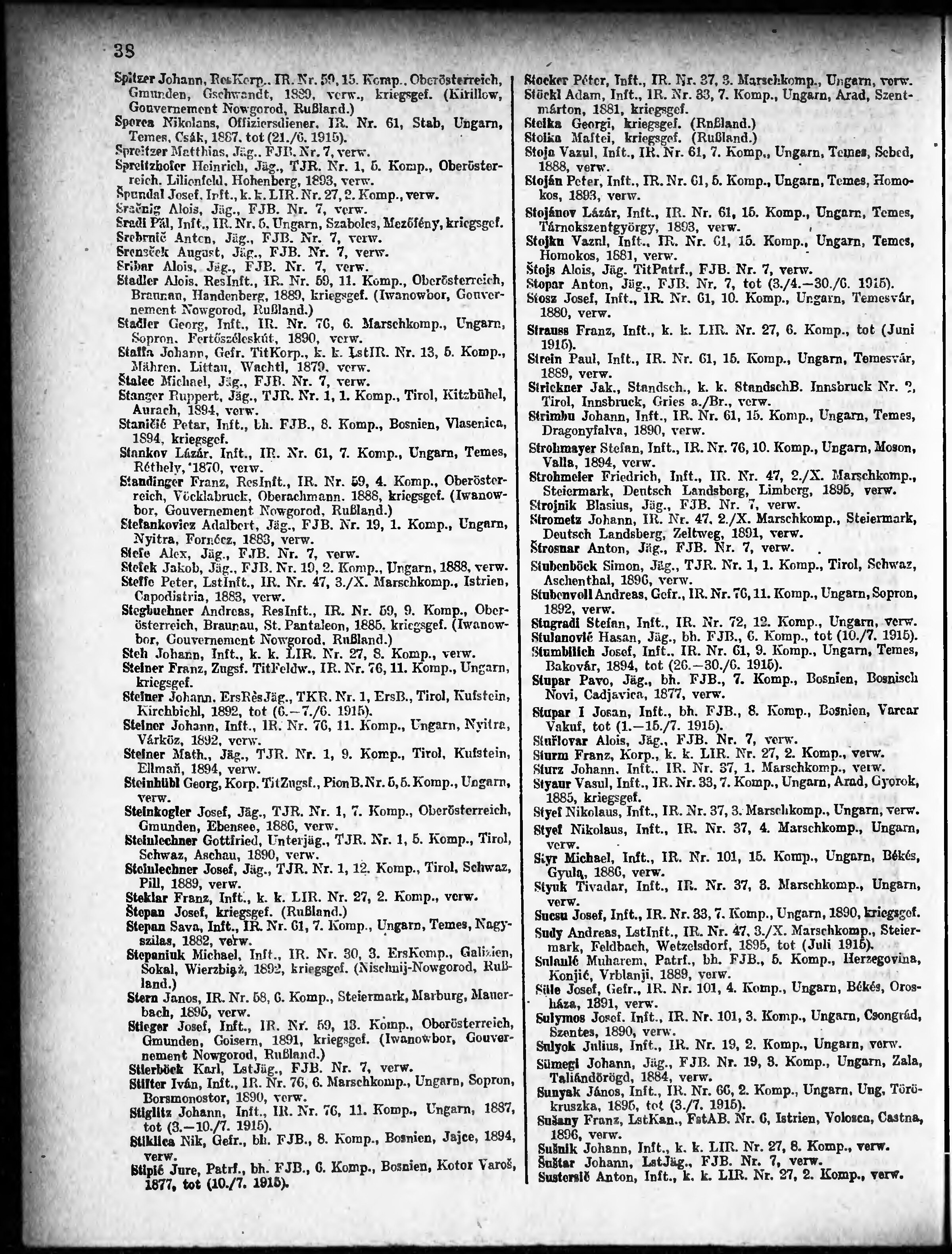 Verlustliste ausgegeben am