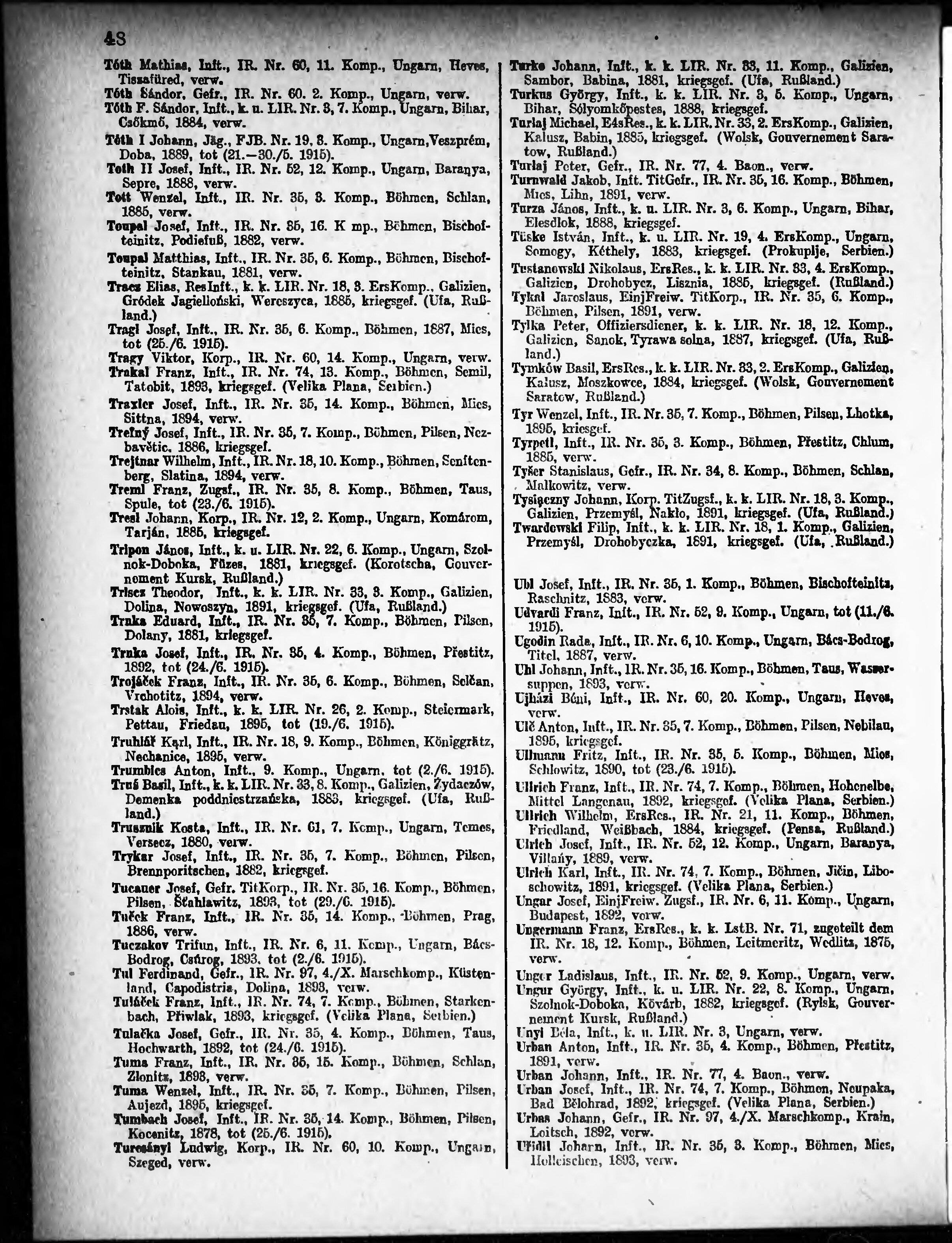 Verlustliste ausgegeben am