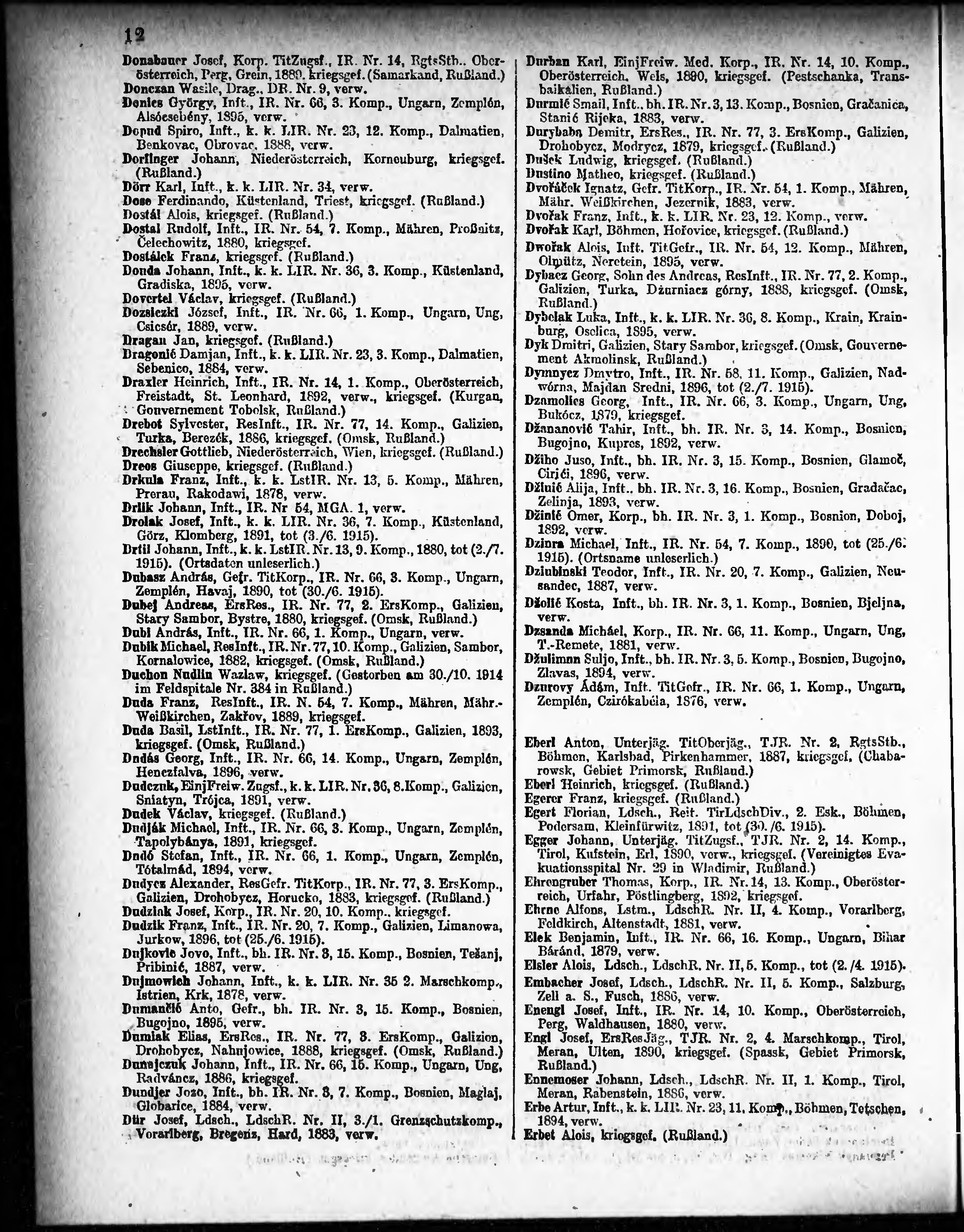 Verlustliste ausgegeben am