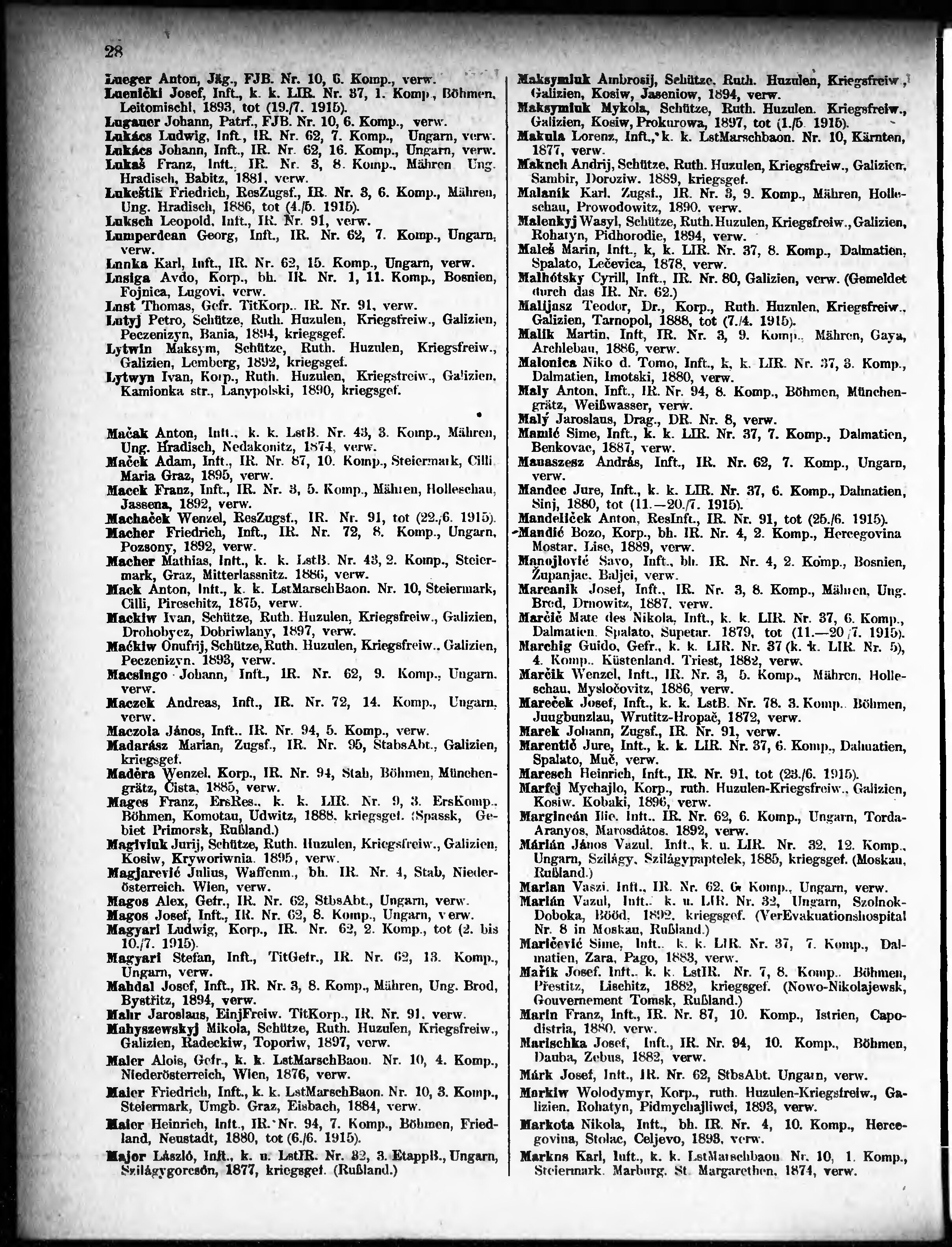 Verlustliste ausgegeben am