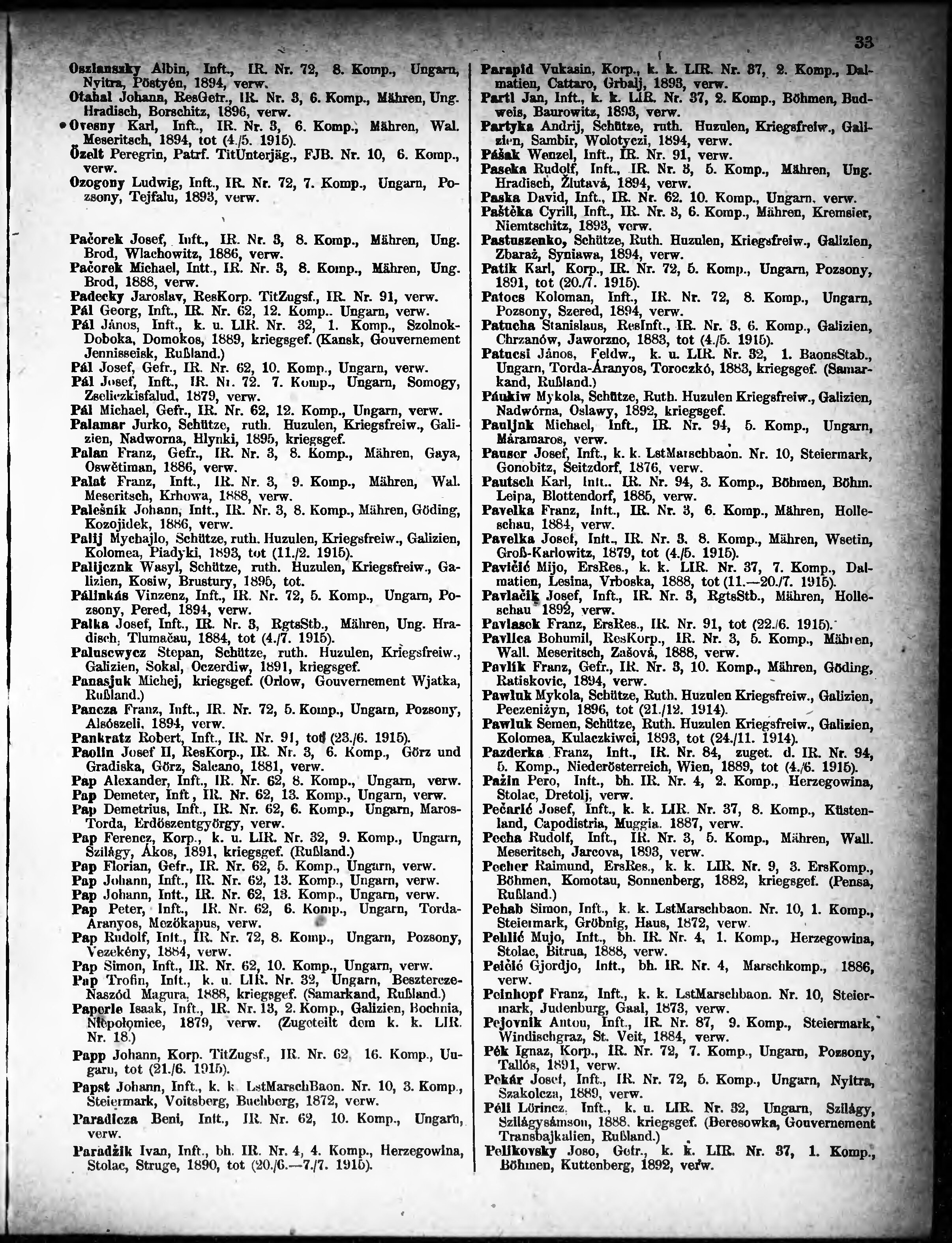 Verlustliste ausgegeben am