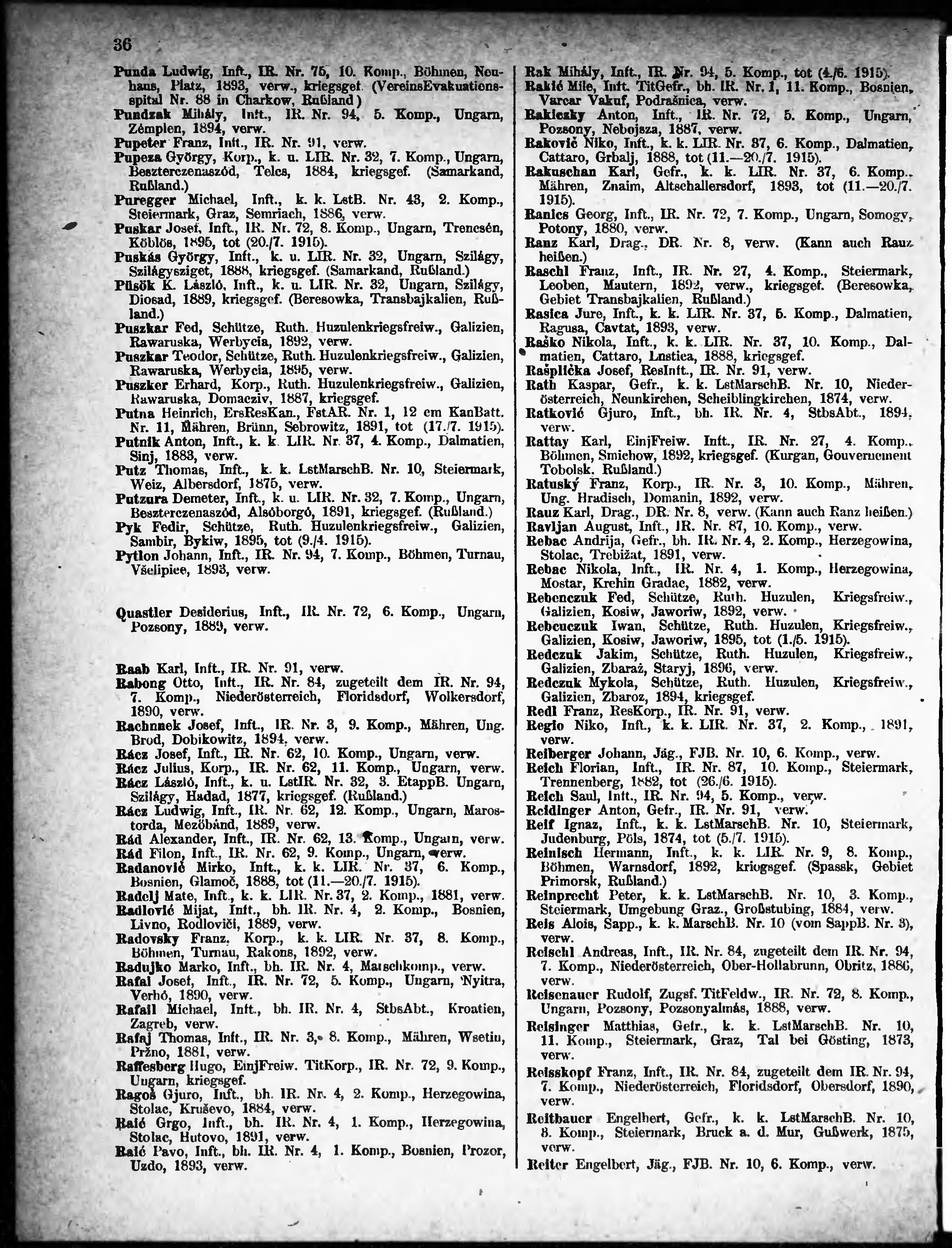 Verlustliste ausgegeben am
