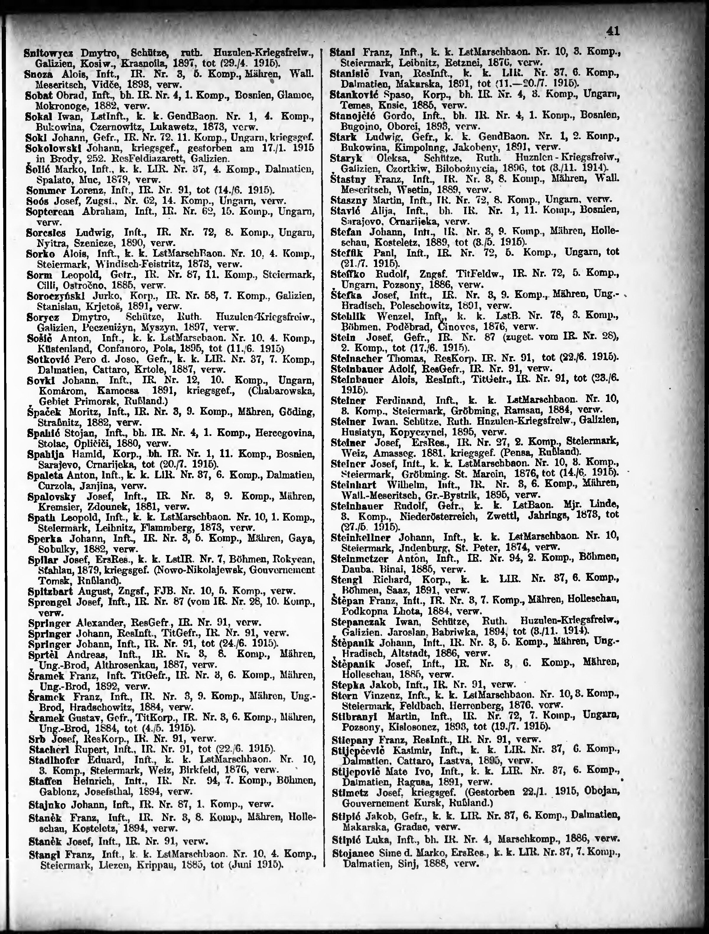 Verlustliste ausgegeben am