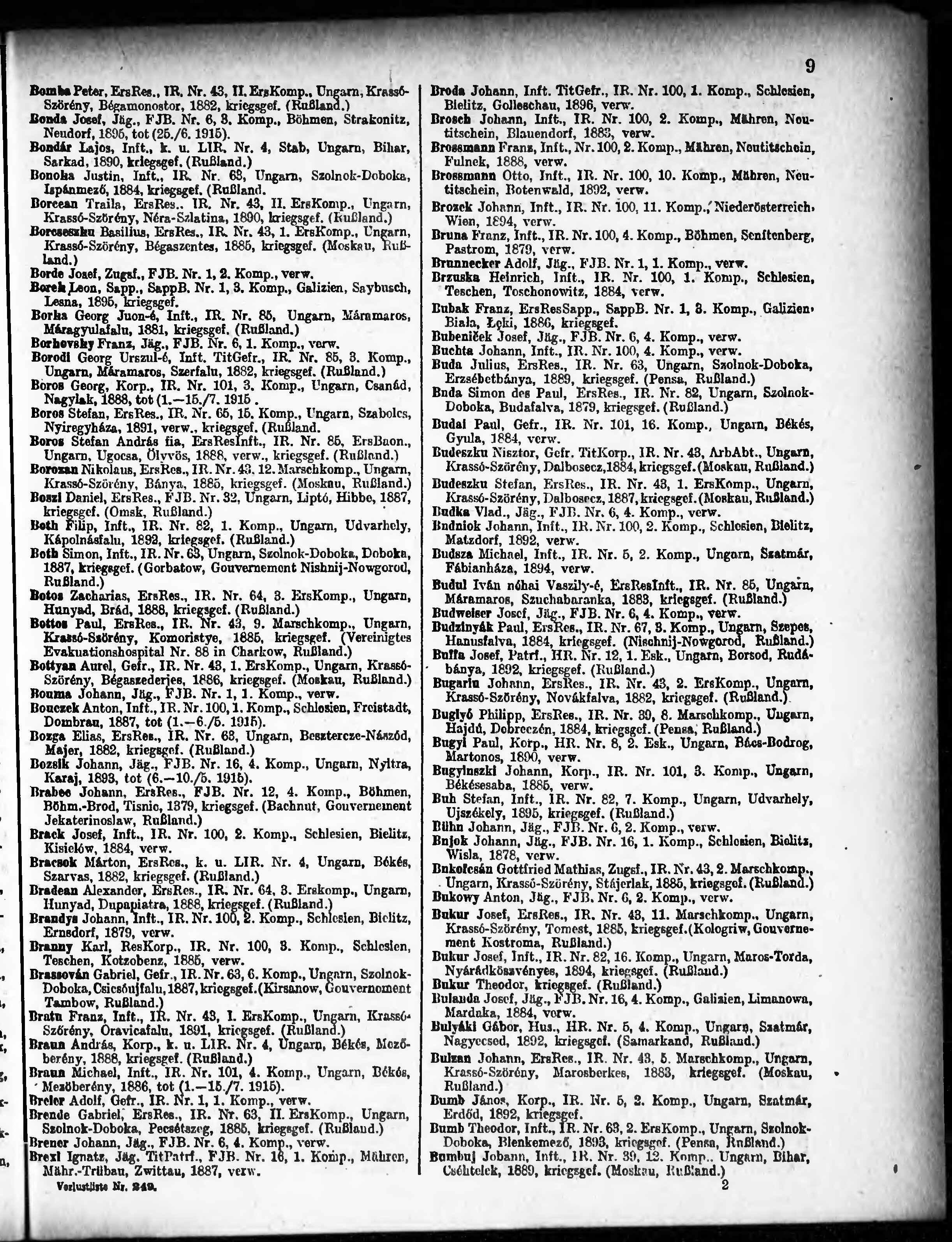 Verlustliste ausgegeben am