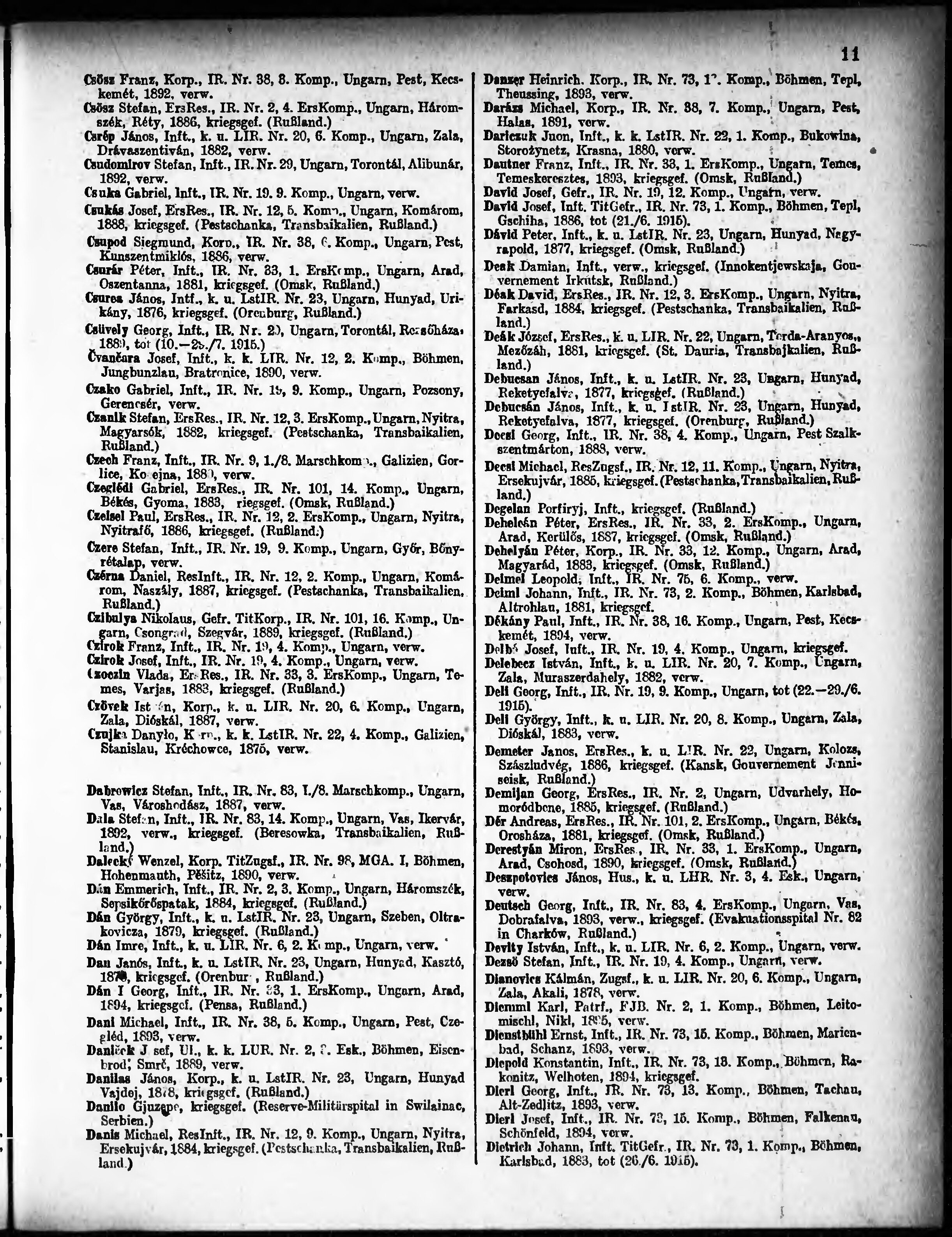 Verlustliste ausgegeben am