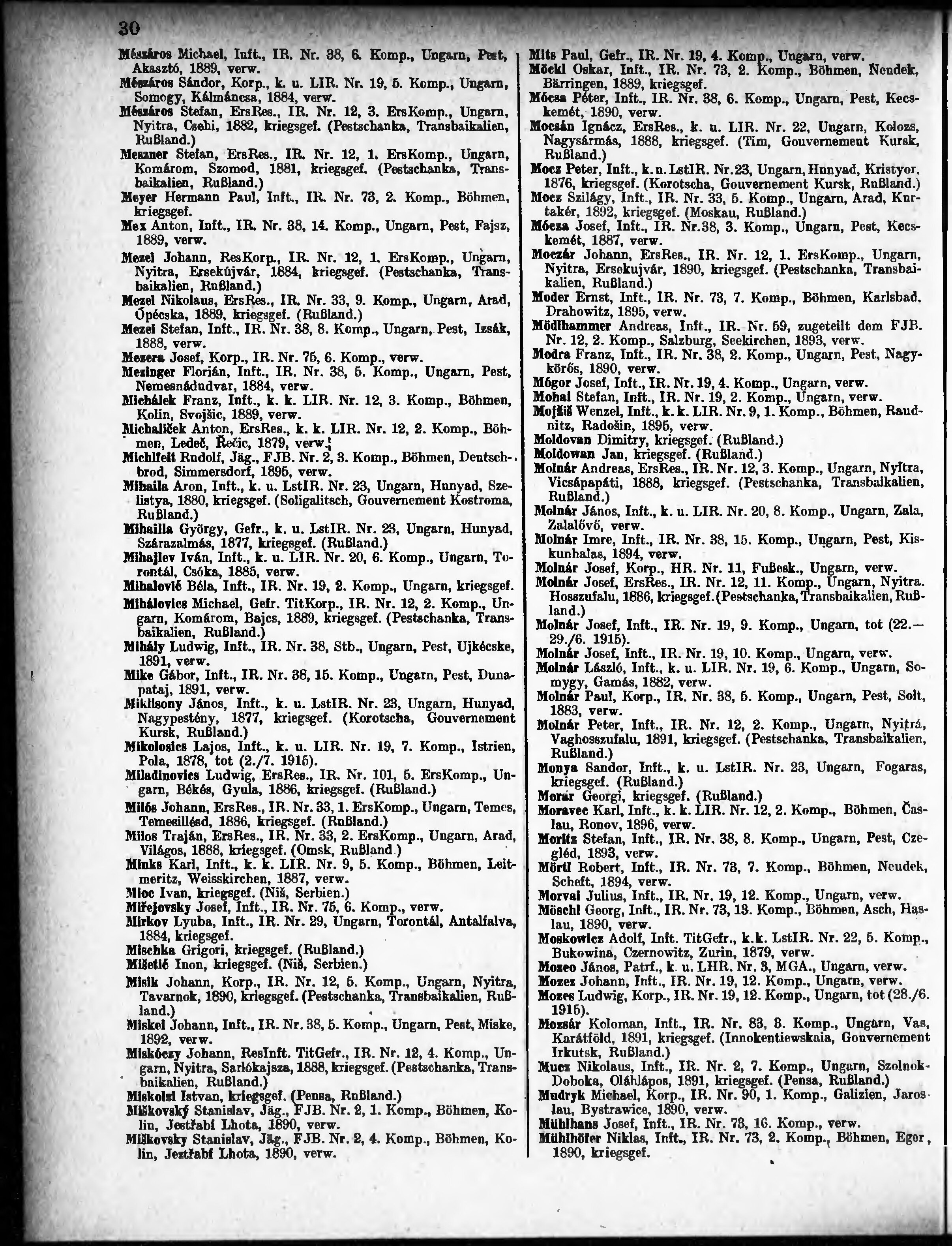 Verlustliste ausgegeben am