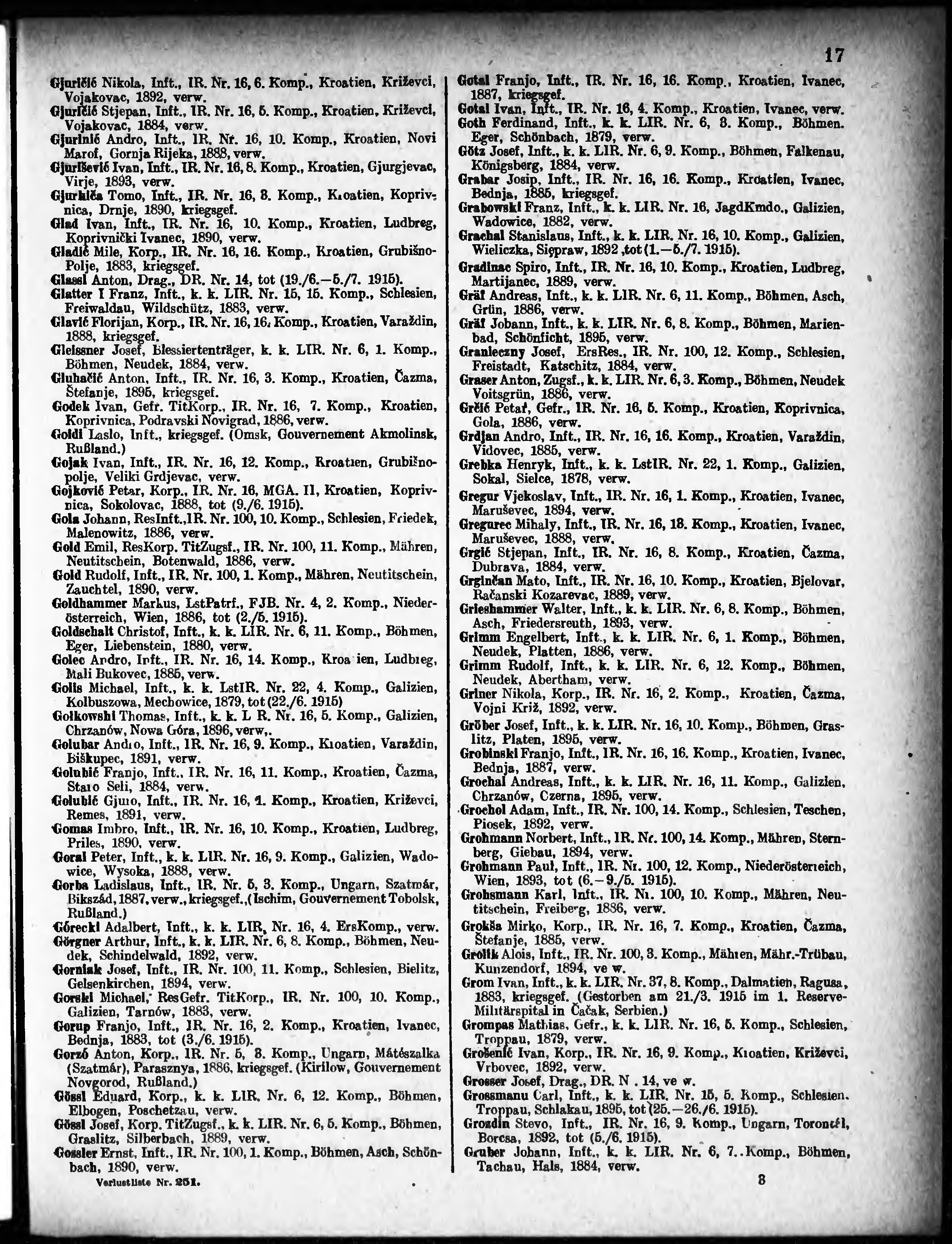 Verlustliste ausgegeben am