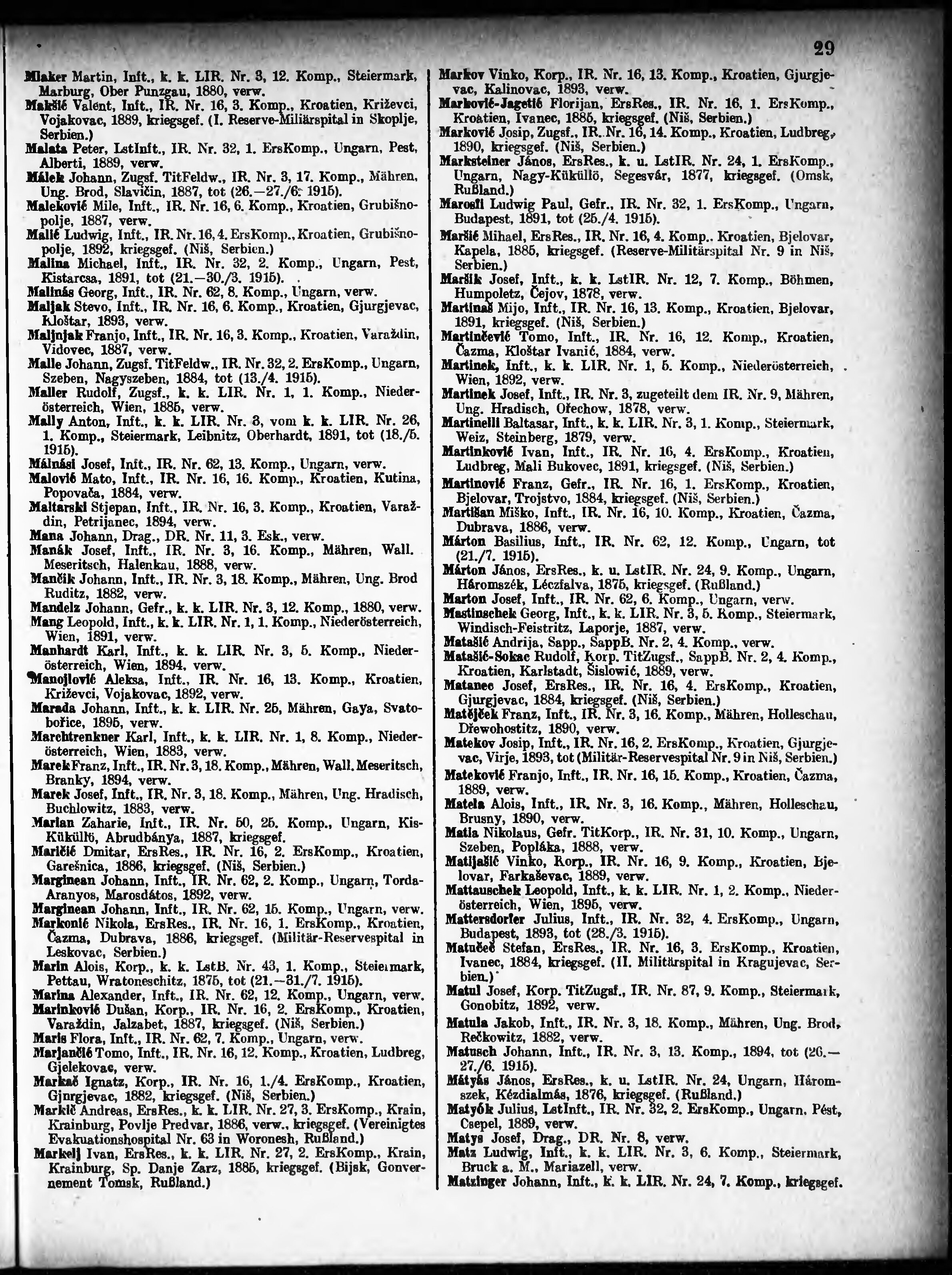 Verlustliste ausgegeben am
