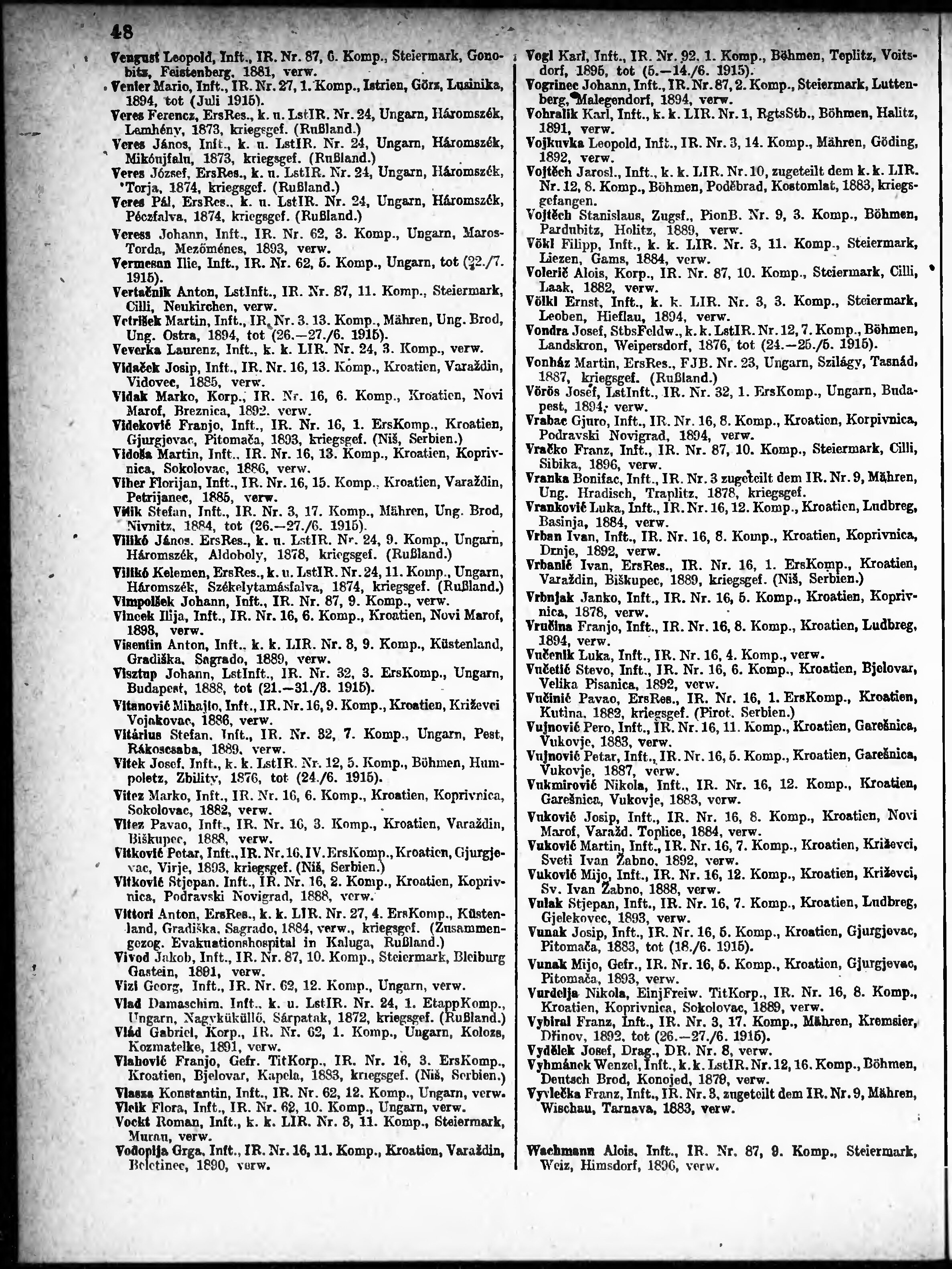 Verlustliste ausgegeben am