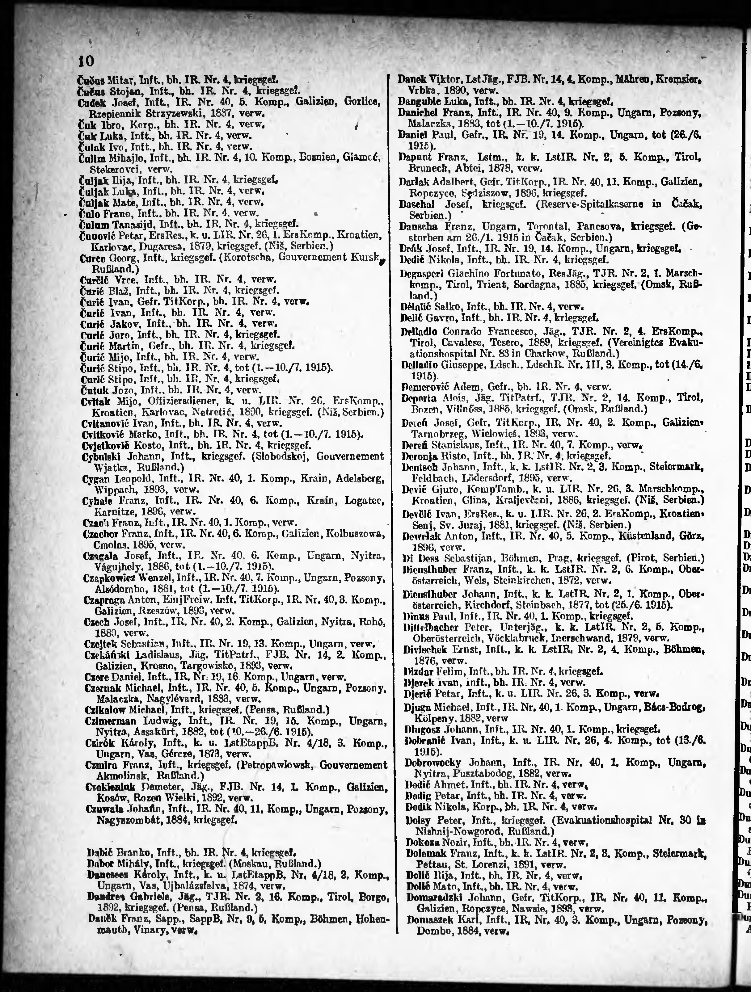 Verlustliste ausgegeben am