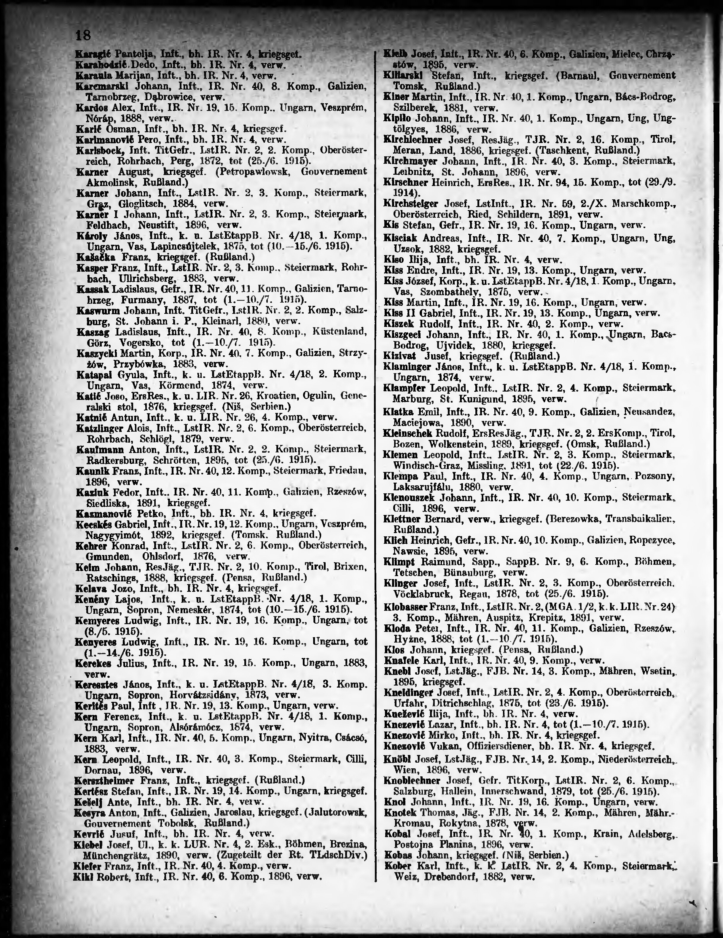 Verlustliste ausgegeben am