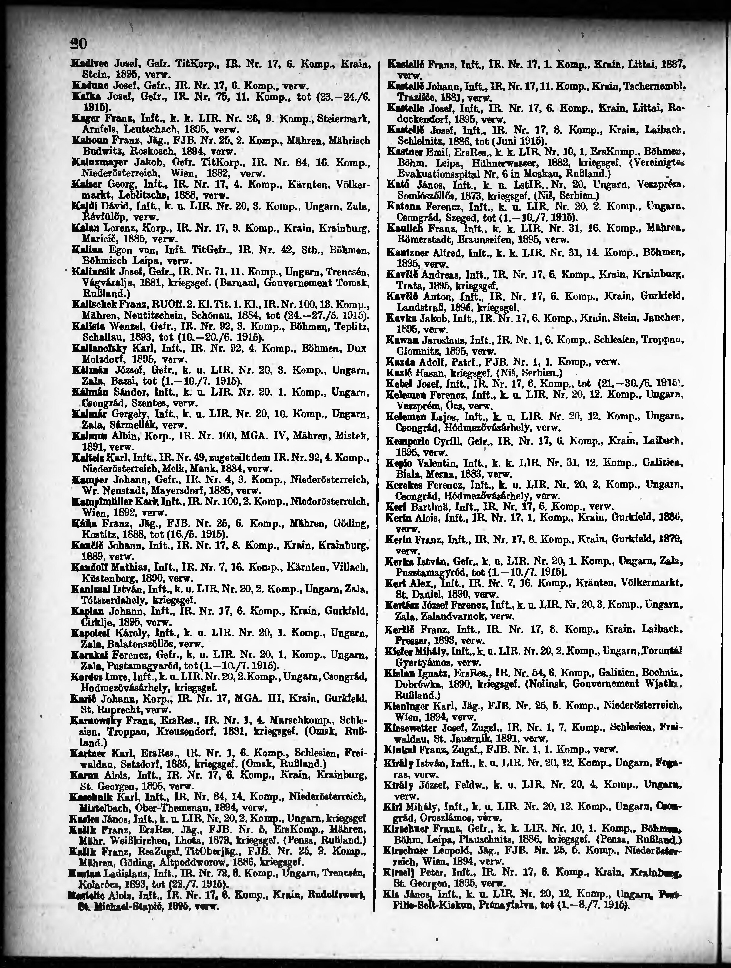 Verlustliste ausgegeben am