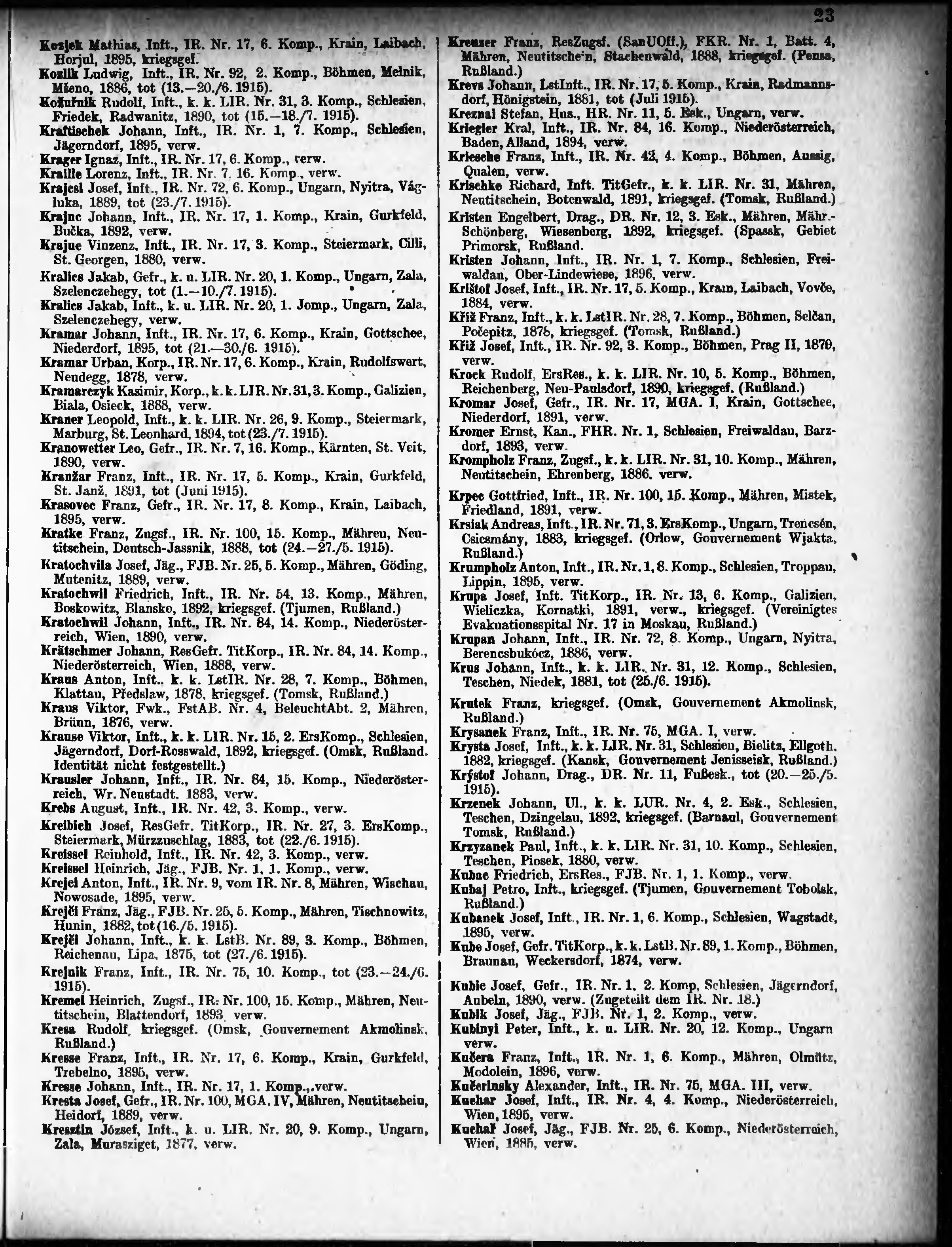 Verlustliste ausgegeben am