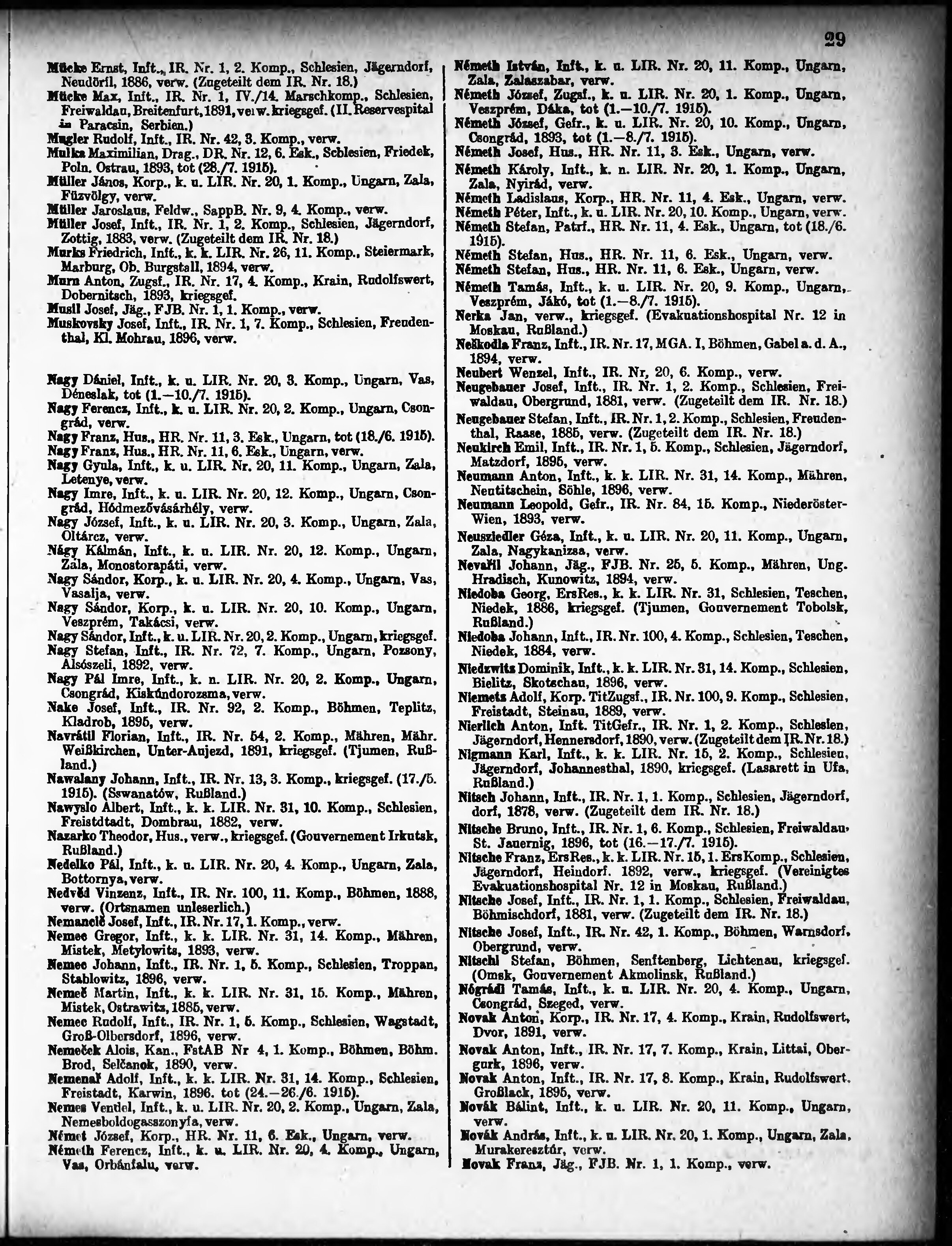 Verlustliste ausgegeben am