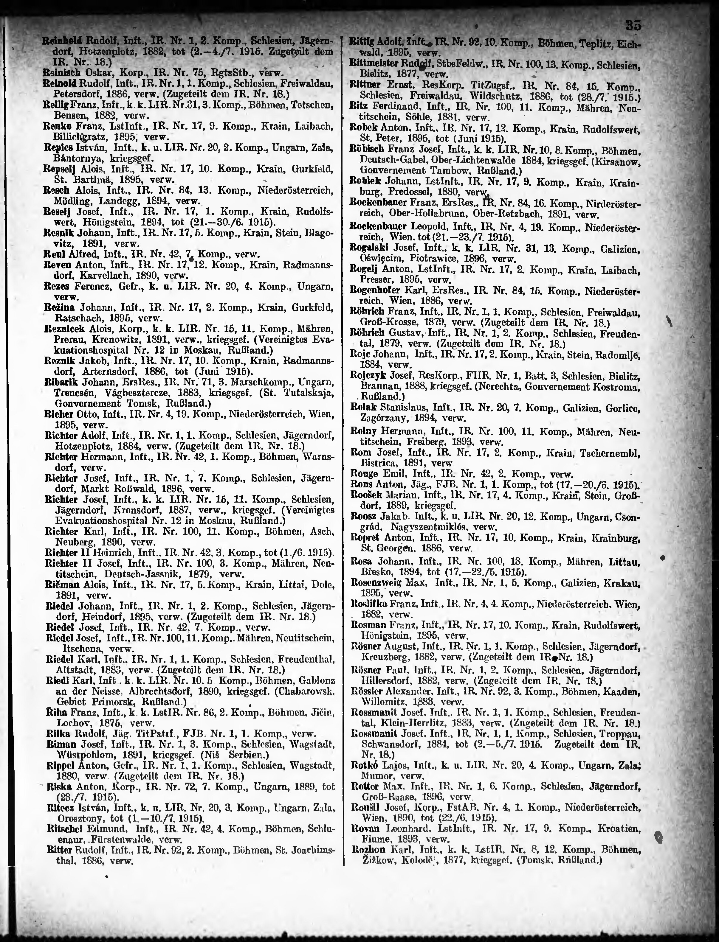 Verlustliste ausgegeben am